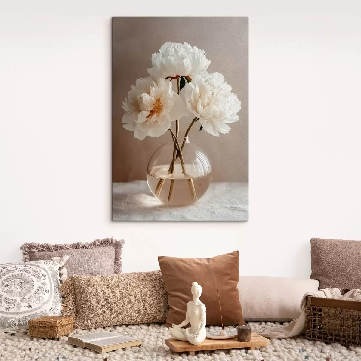 Vászonkép levegős, minimalista csendélet pünkösdi rózsákkal Nr s48119