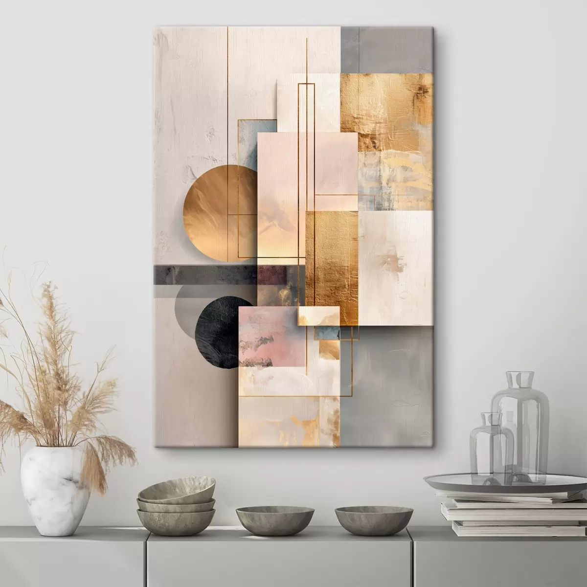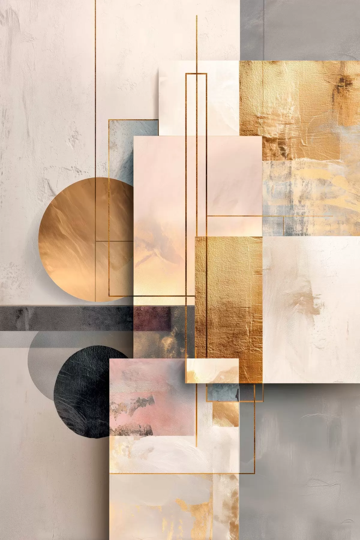 Vászonkép Geometrikus alakzatokból és texturált elemekből álló absztrakt kollázs Nr s48195