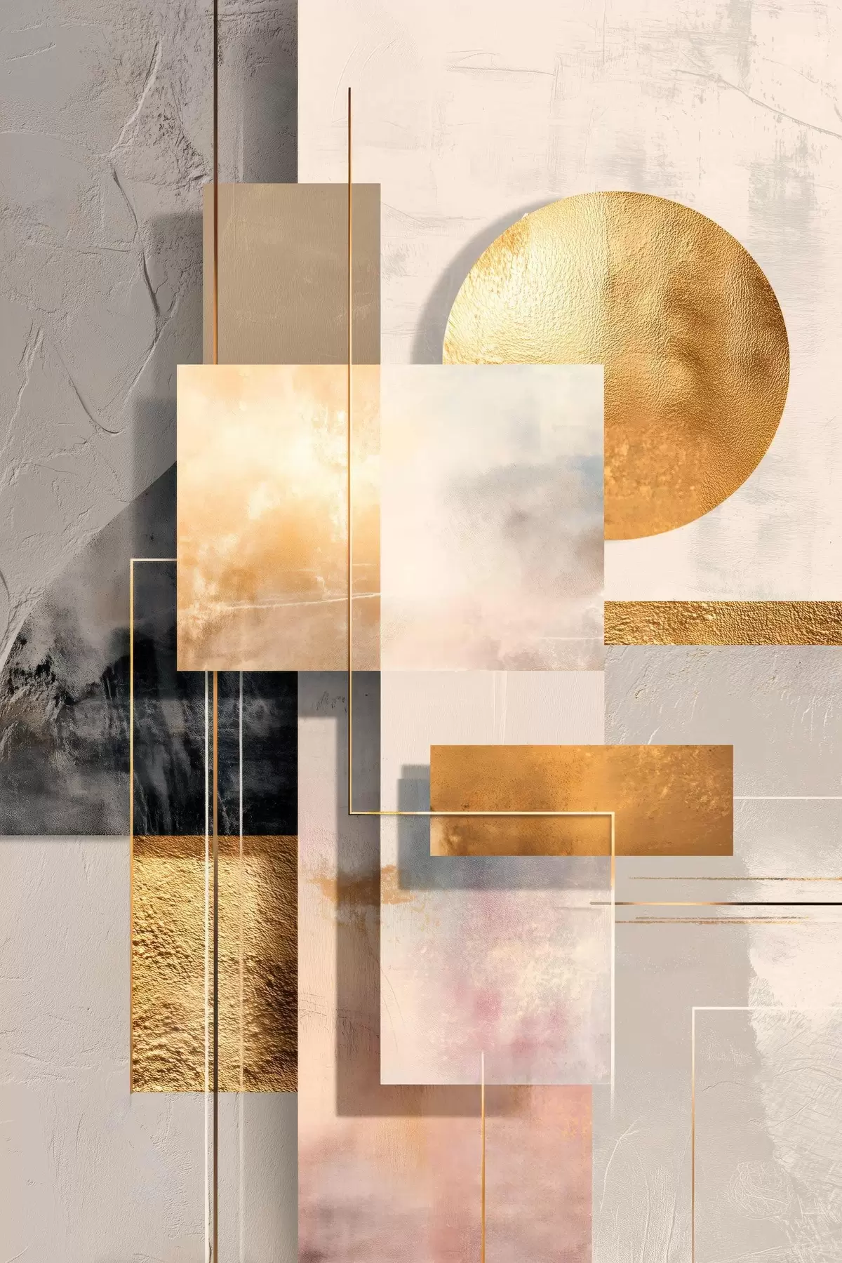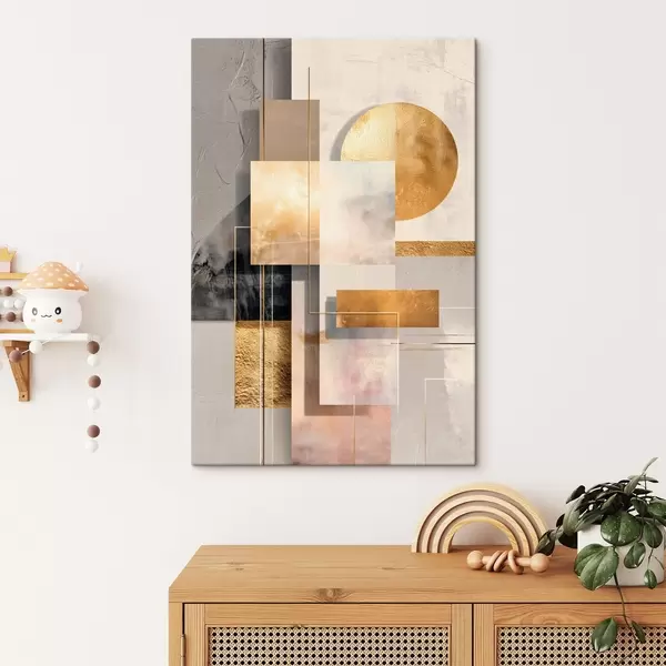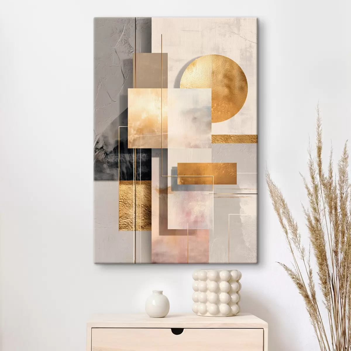 Vászonkép Dekoratív kompozíció téglalapokkal és körrel, meleg bézs és barna színvilágban Nr s48196