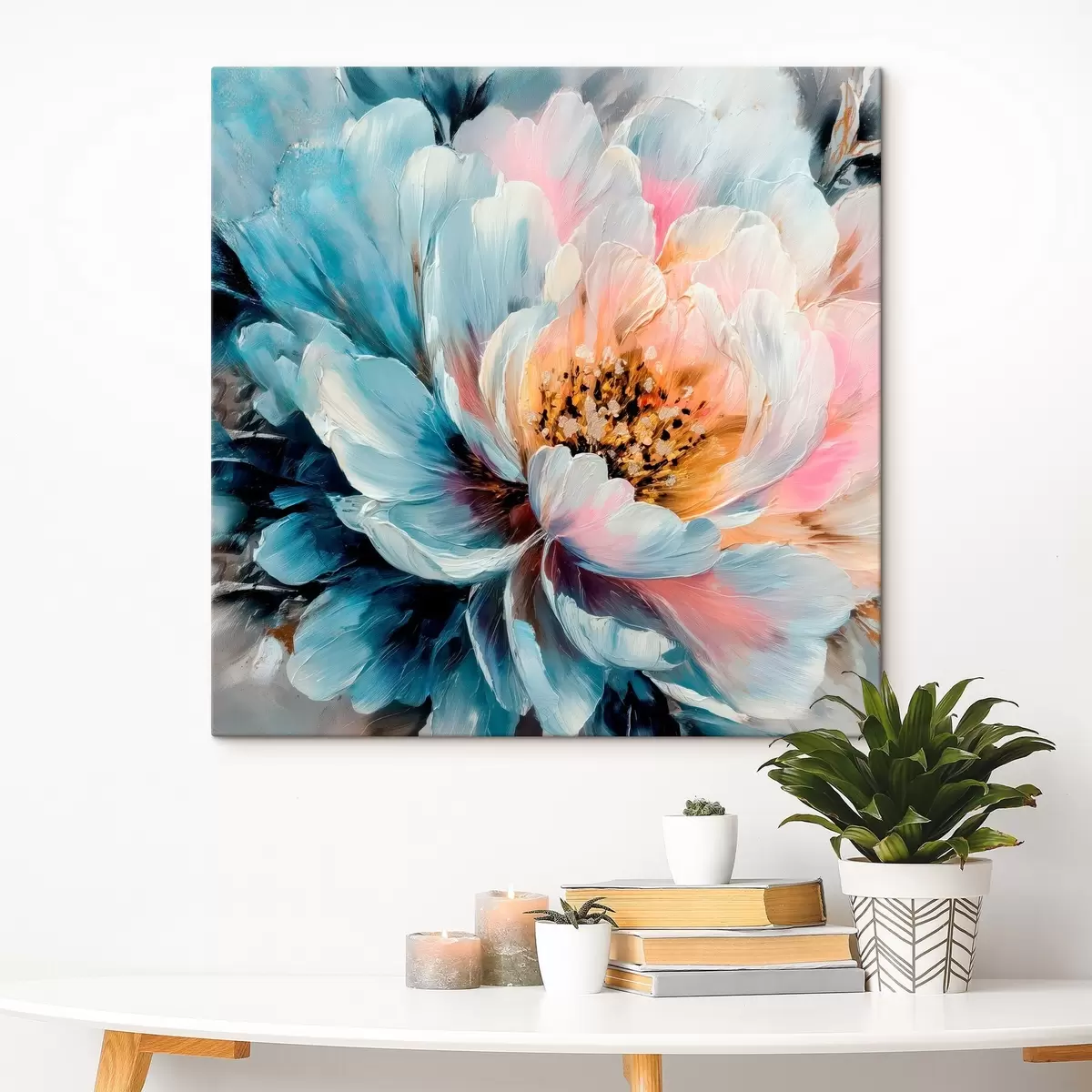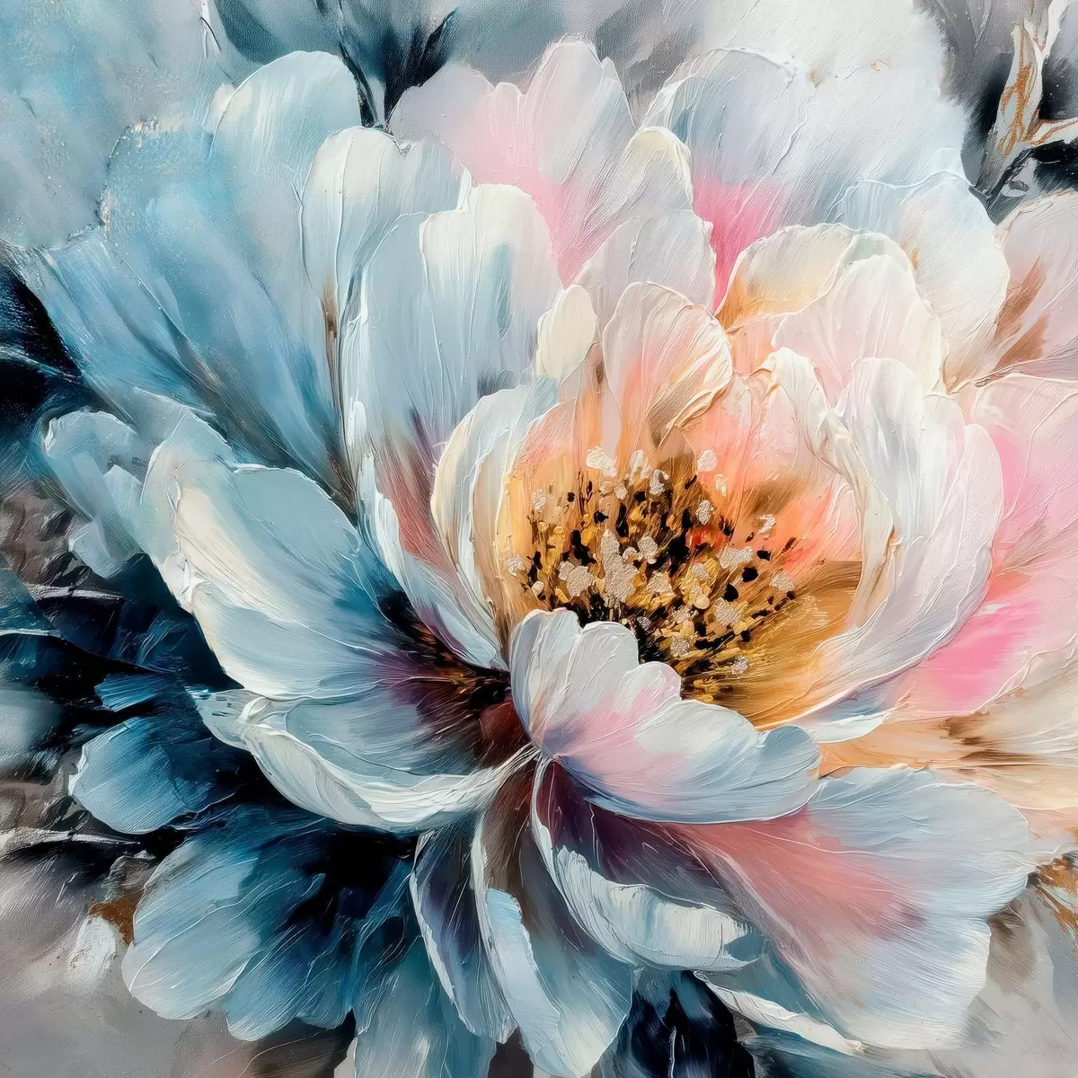 Vászonkép Nagy pünkösdi rózsa, kifejező, texturált ecsetvonásokkal, kortárs festészeti stílusban Nr s48197
