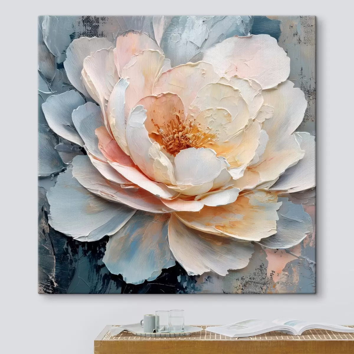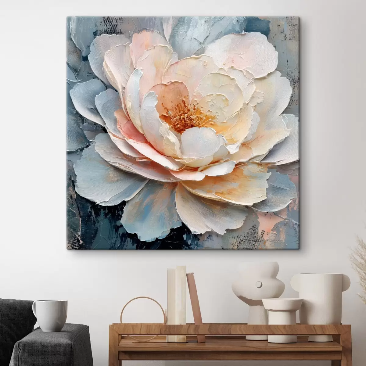 Vászonkép Virág közeli képe, kifejező, texturált ecsetvonásokkal, kortárs festészeti stílusban Nr s48198