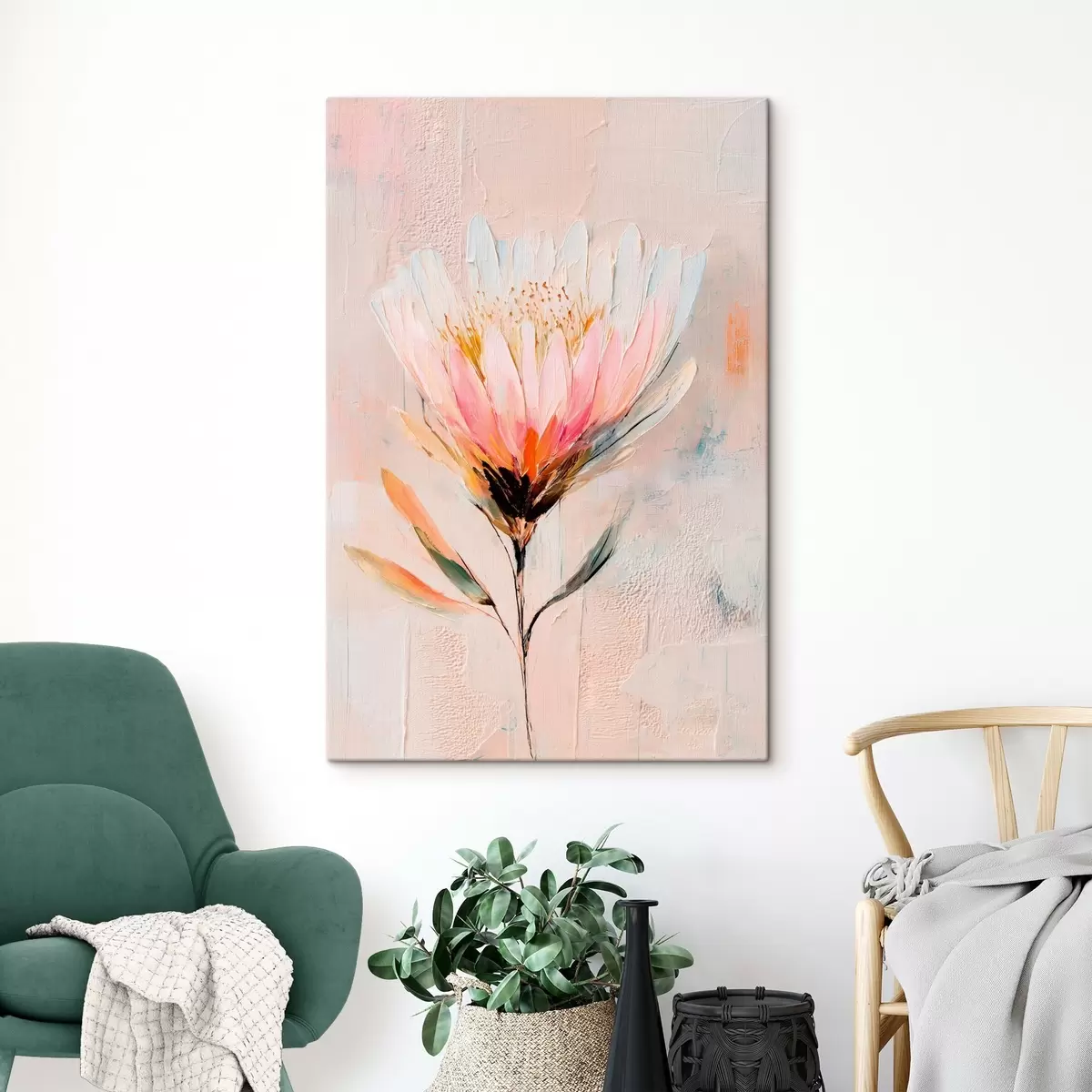 Vászonkép Protea virág lágy rózsaszín árnyalatokban, olajfestmény stílusban Nr s48205