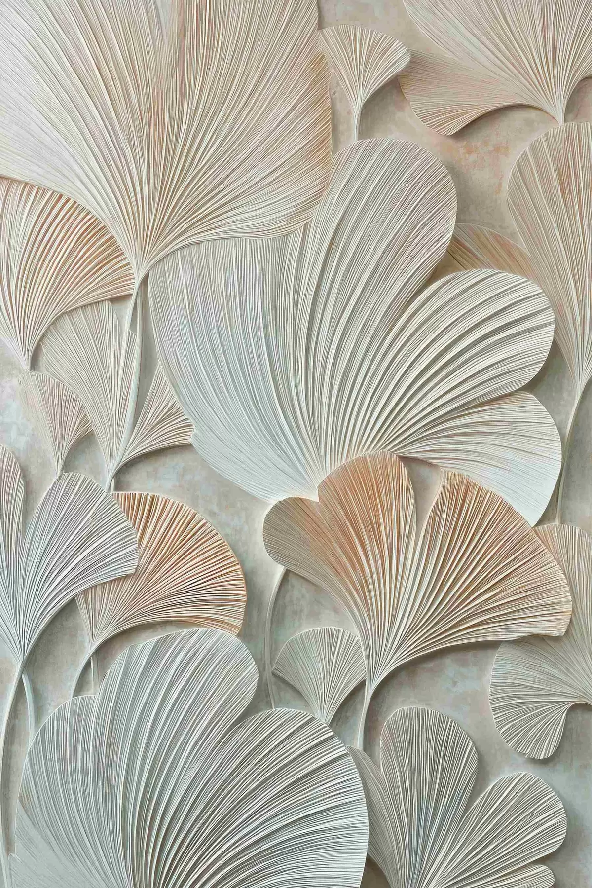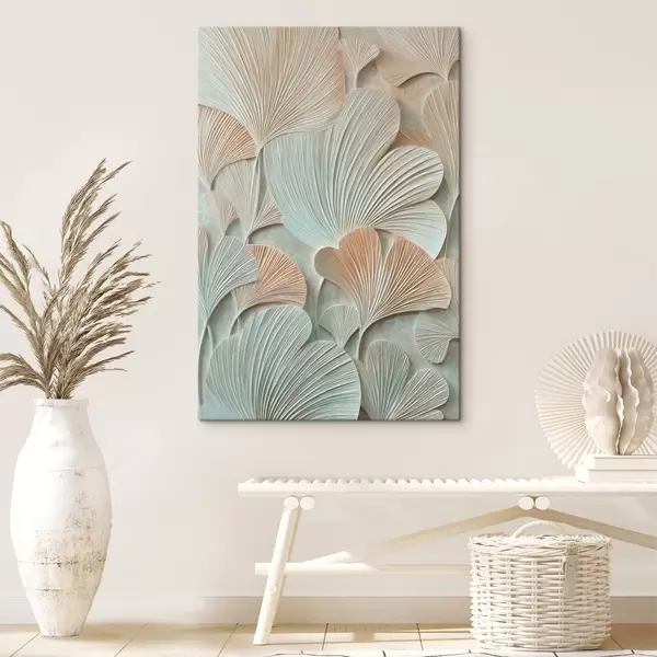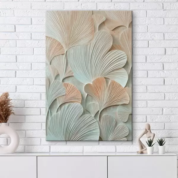 Vászonkép Stilizált ginkgo biloba levelek, térbeli textúrával, pasztell színekben Nr s48209