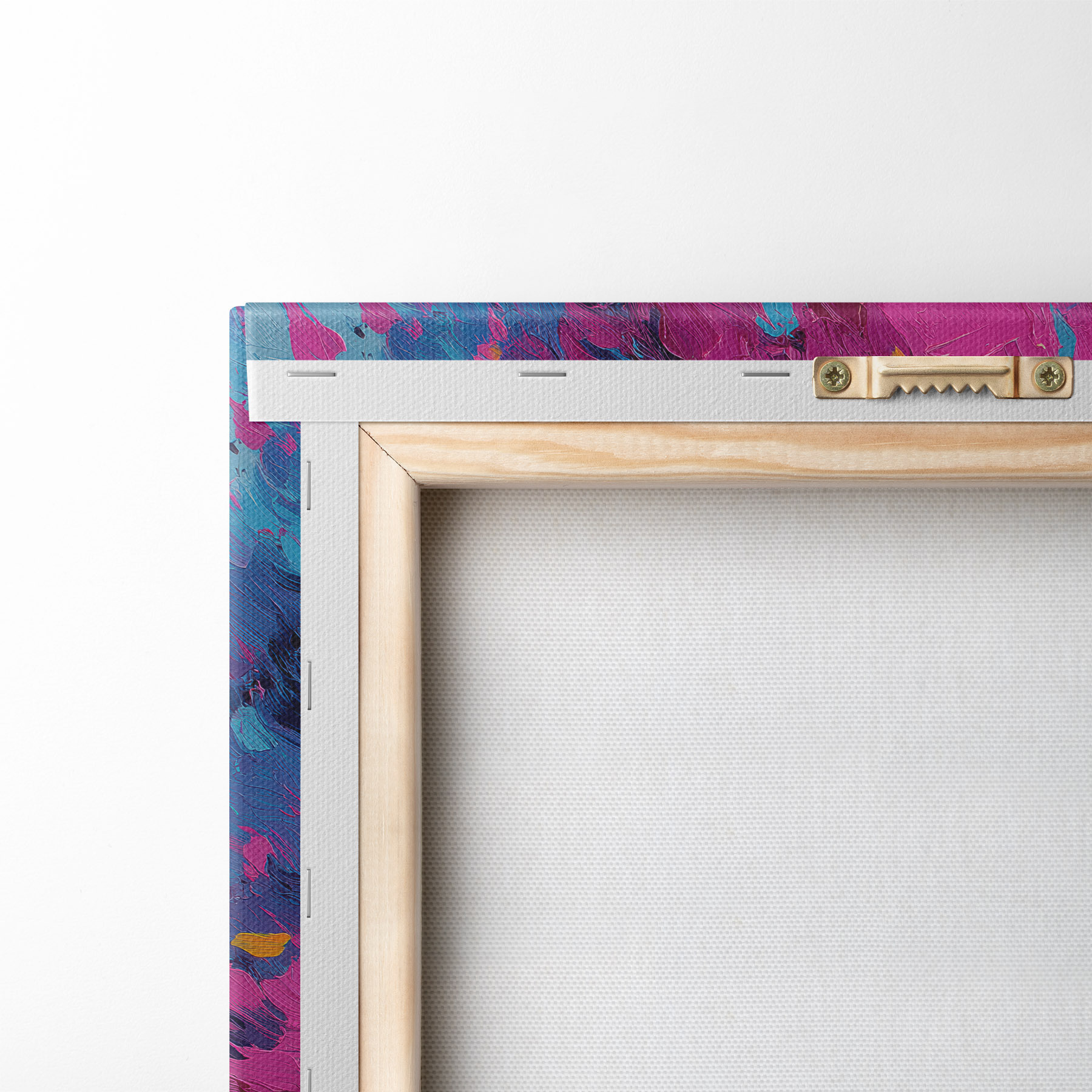 Ahhoz, hogy a vásznat a feszítőrúdra feszítsük anélkül, hogy a kép megsérülne, tükrözött képet használunk.