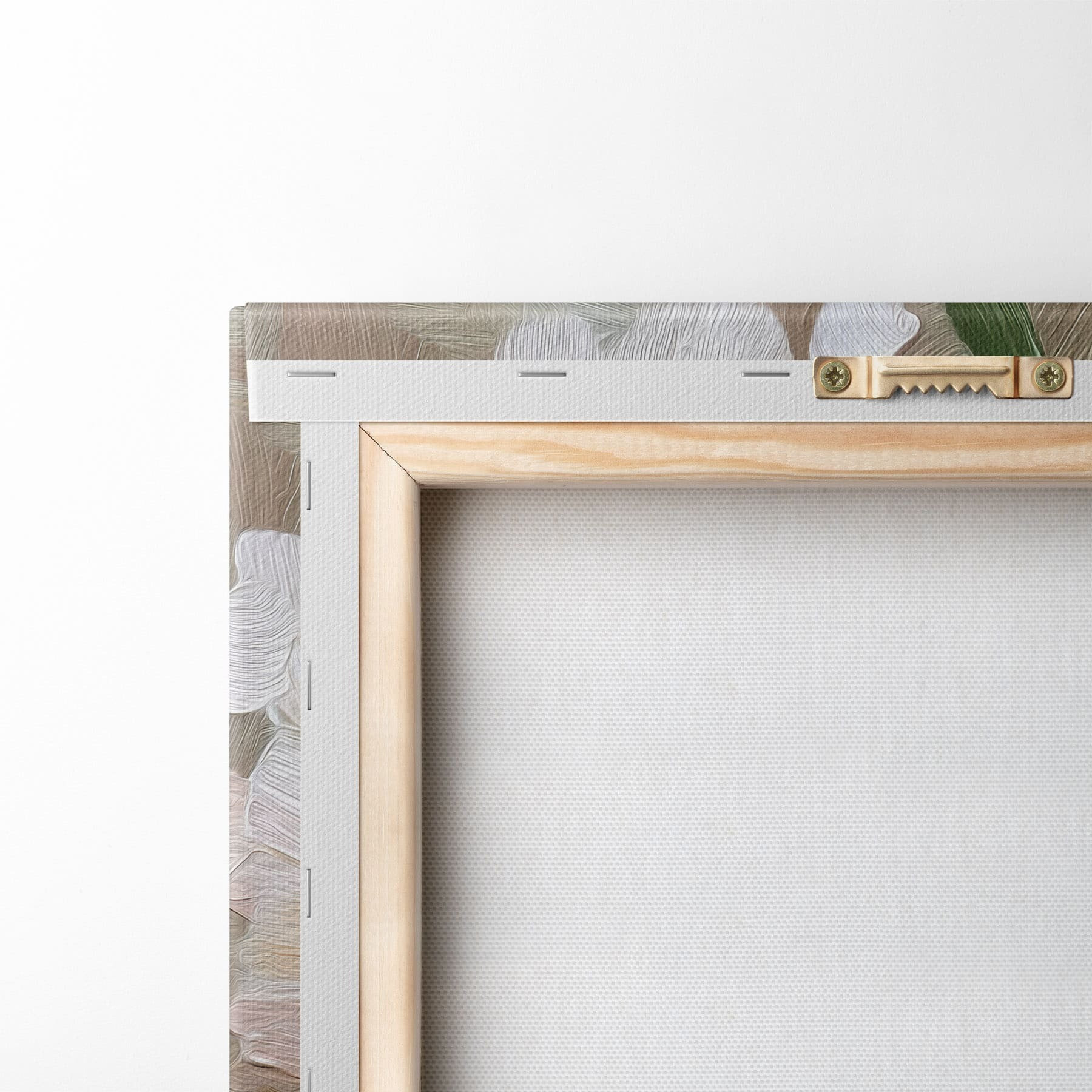 Ahhoz, hogy a vásznat a feszítőrúdra feszítsük anélkül, hogy a kép megsérülne, tükrözött képet használunk.