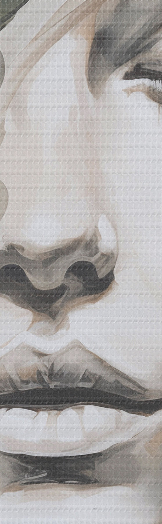 Ahhoz, hogy a vásznat a feszítőrúdra feszítsük anélkül, hogy a kép megsérülne, tükrözött képet használunk.