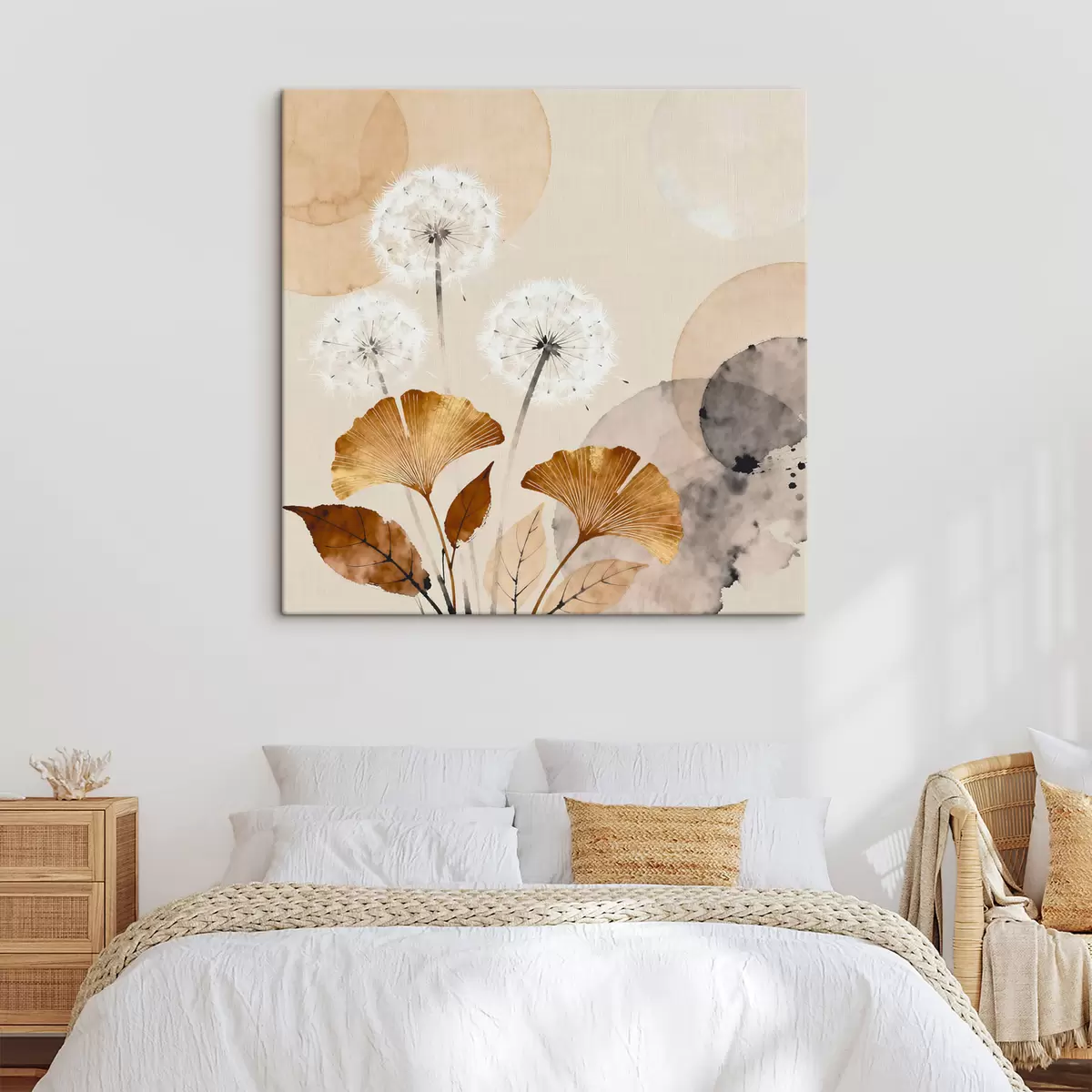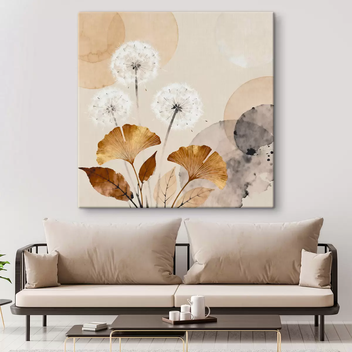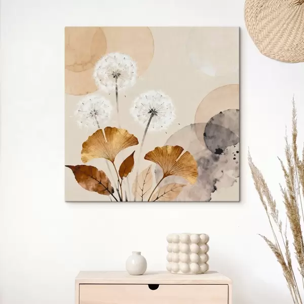 Vászonkép Absztrakt pitypangok és ginkgólevelek Nr s48279