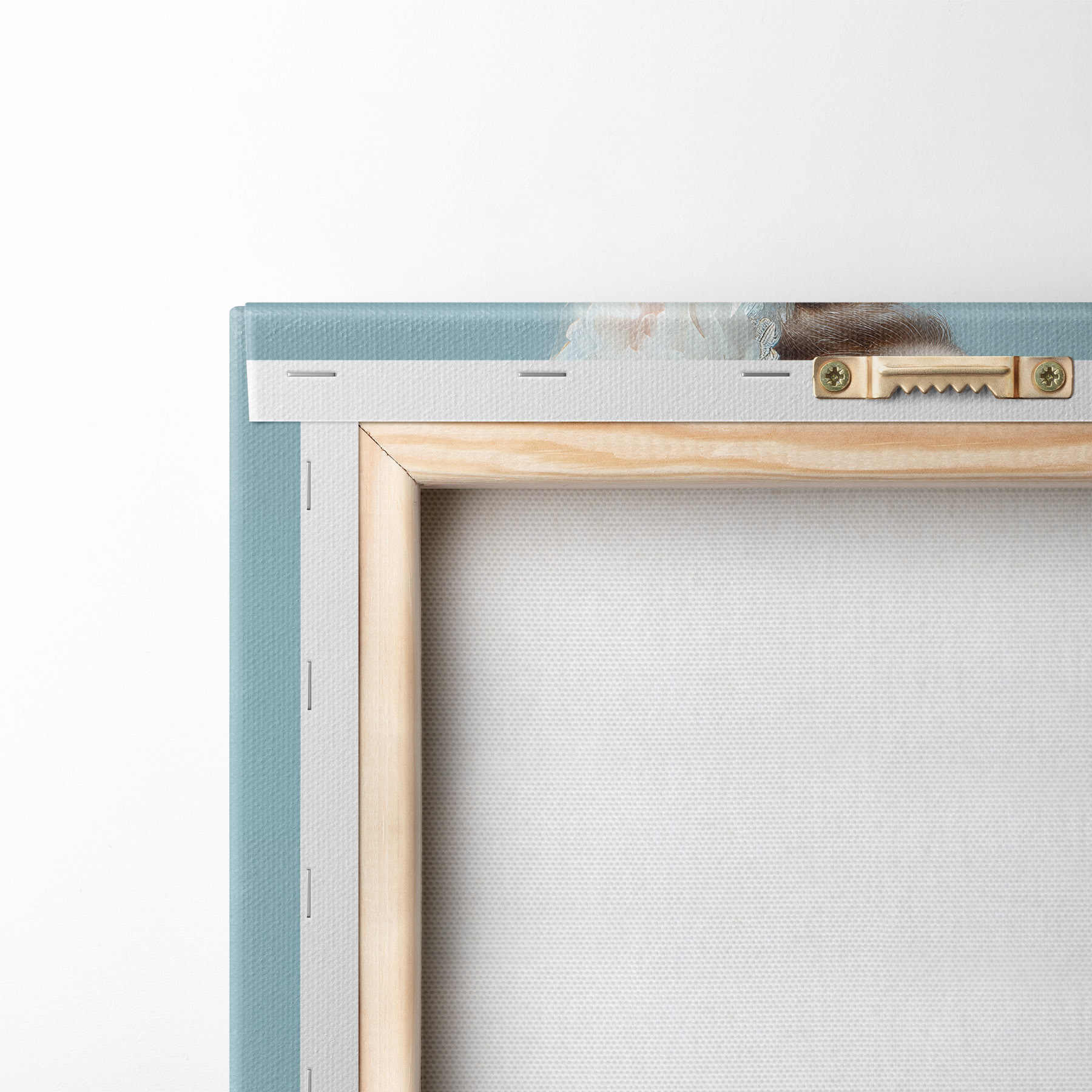 Ahhoz, hogy a vásznat a feszítőrúdra feszítsük anélkül, hogy a kép megsérülne, tükrözött képet használunk.
