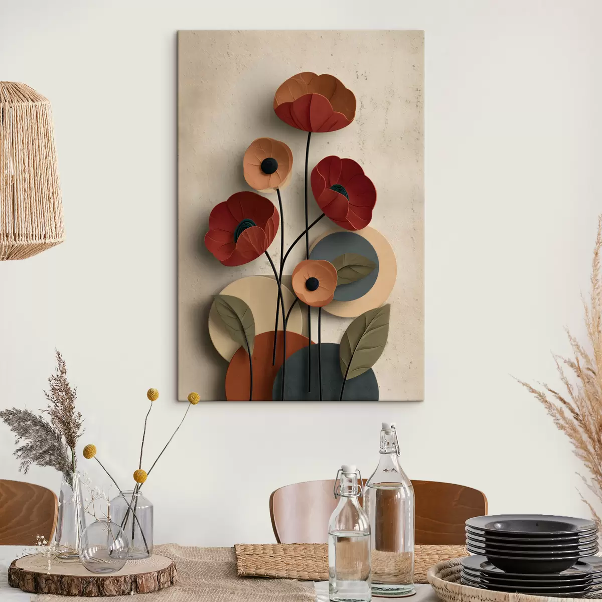 Vászonkép egyszerűsített stílusú, térhatású virágok Nr s48294