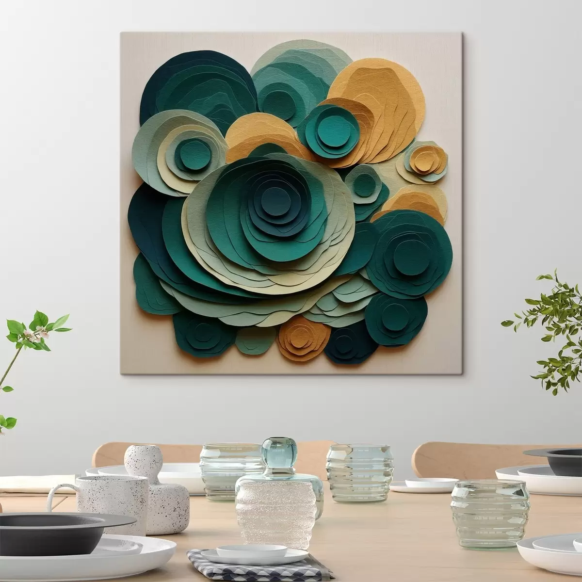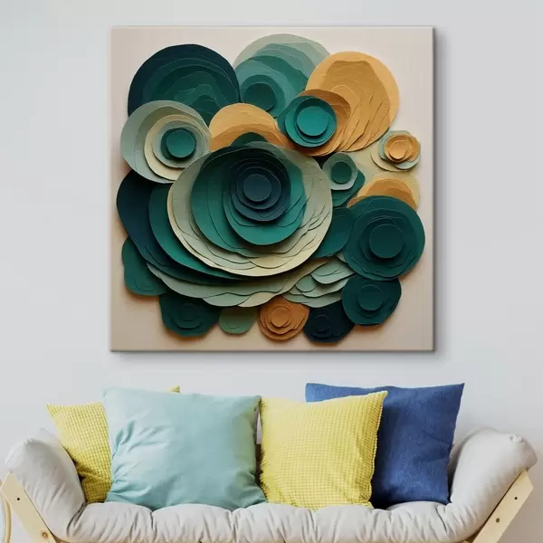 Vászonkép Réteges papírkörök zöld és bézs árnyalatokban Nr s48332