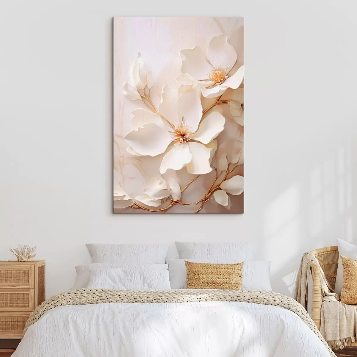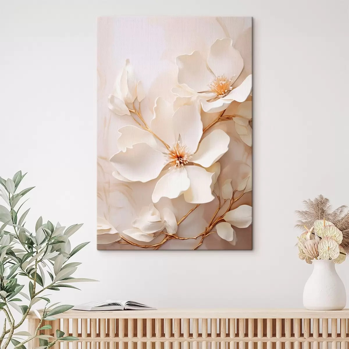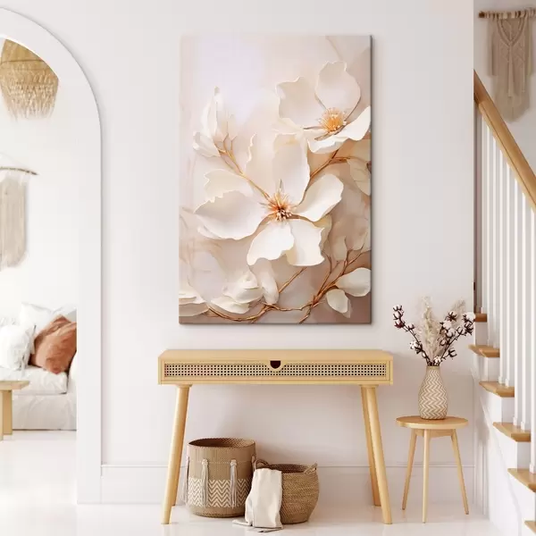 Vászonkép Könnyed virágok vékony ágakkal pasztell háttér előtt Nr s48348