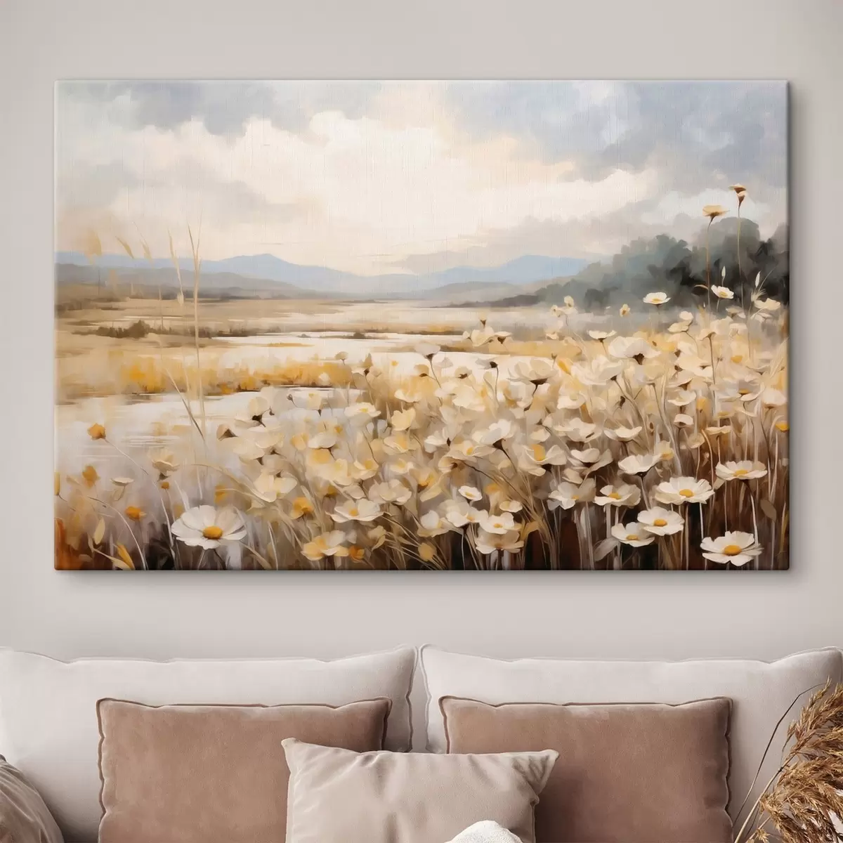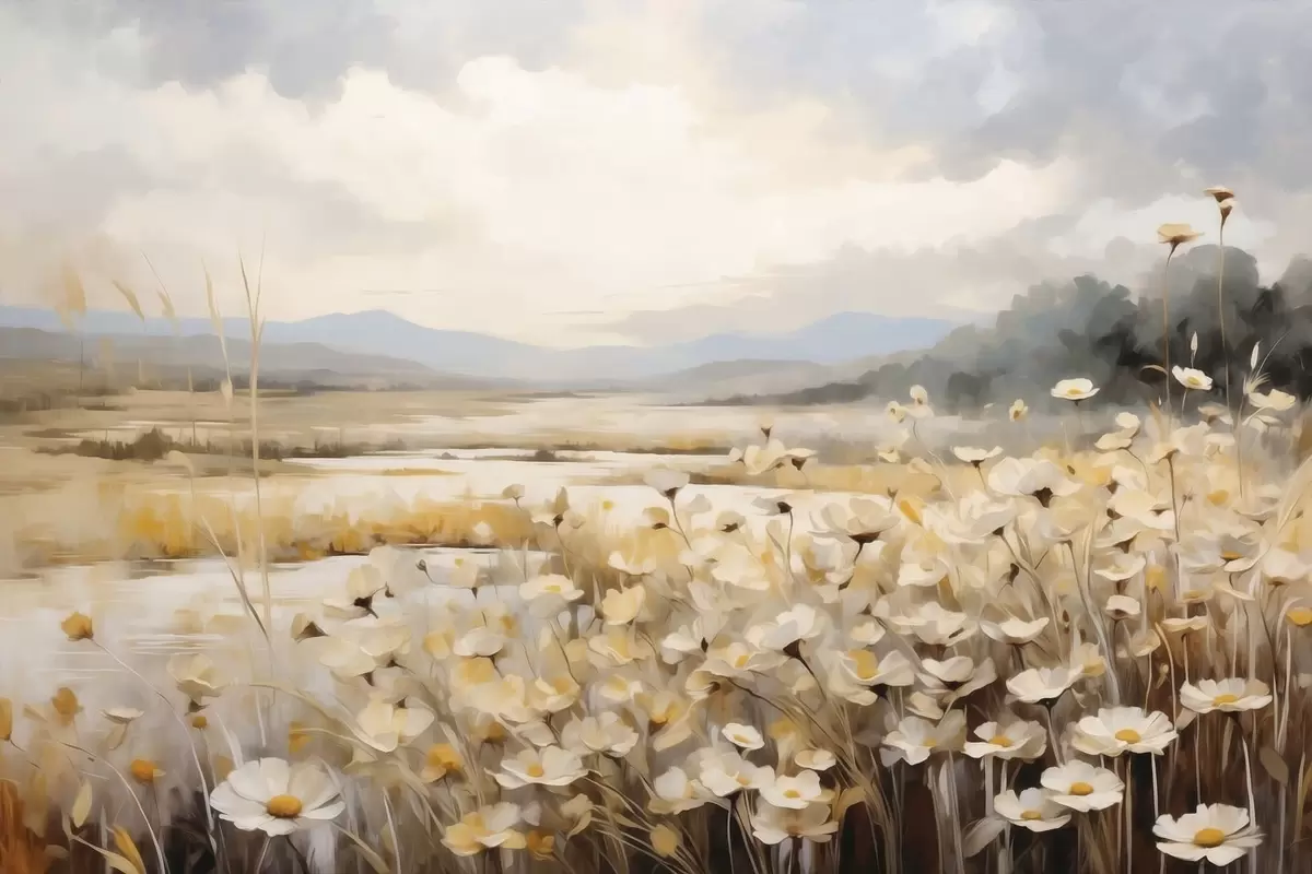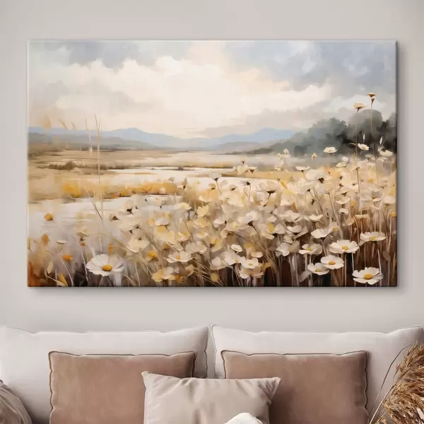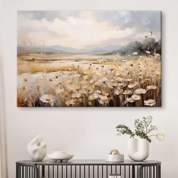 Vászonkép Vízparti mezei virágok lágy, festői stílusban Nr s48354