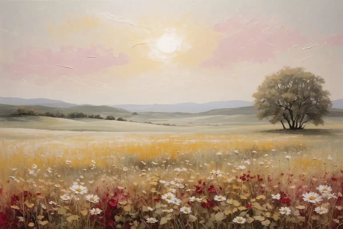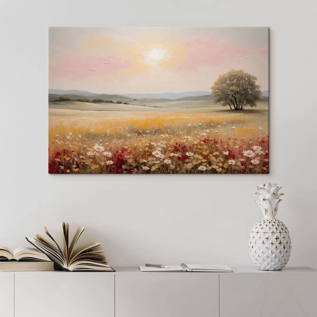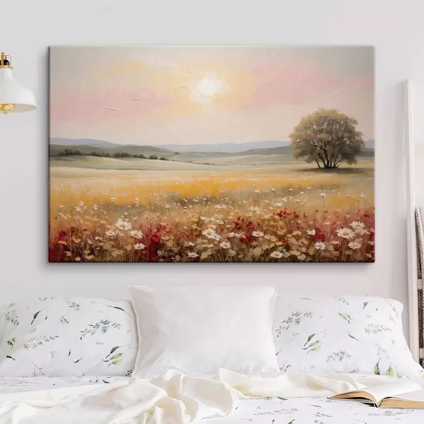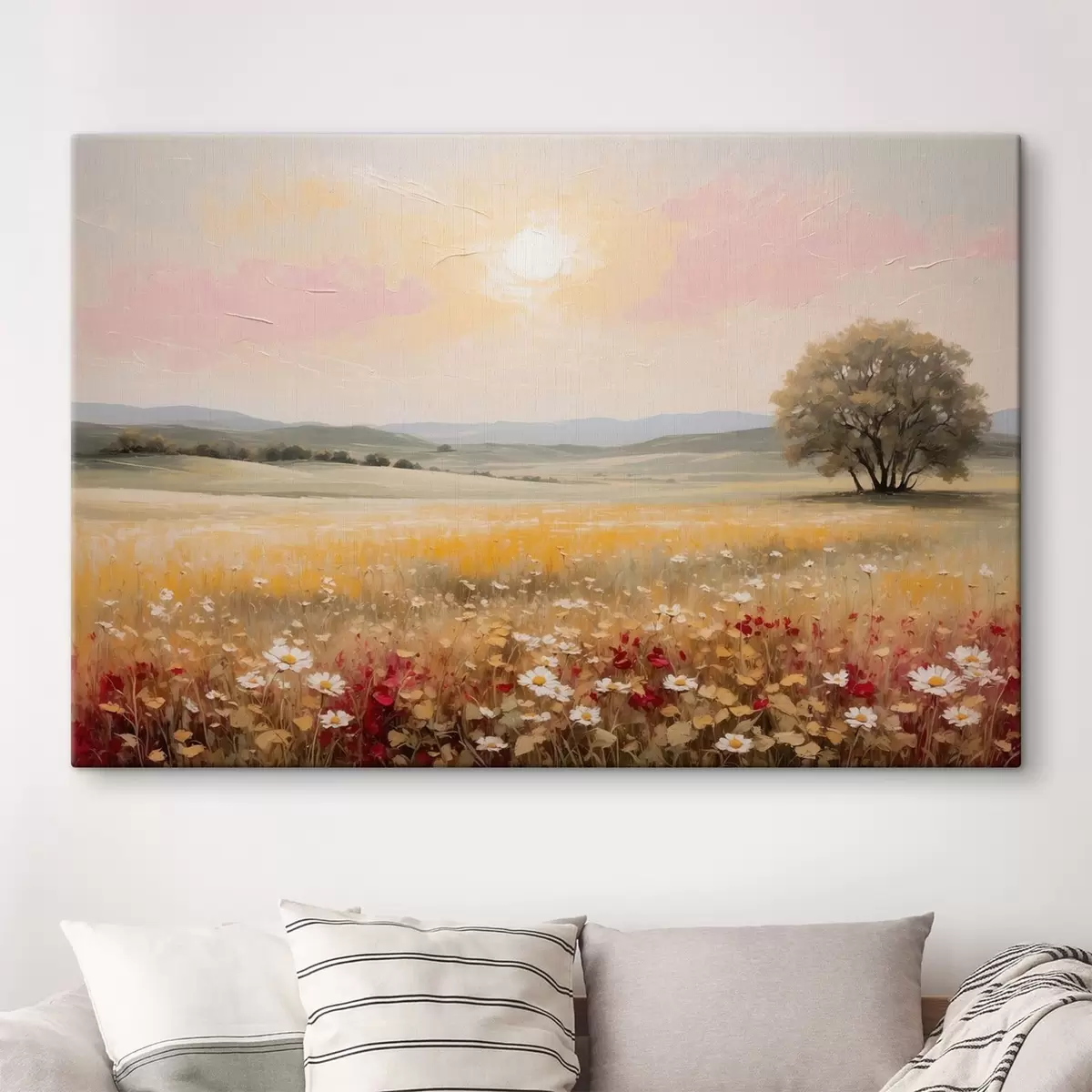 Vászonkép Tájkép virágmezővel és fával a láthatáron Nr s48355