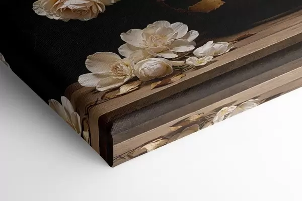 Vászonkép Világos színű virágok vázában, díszítő levelekkel Nr s48356