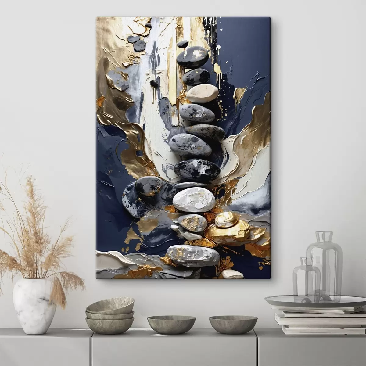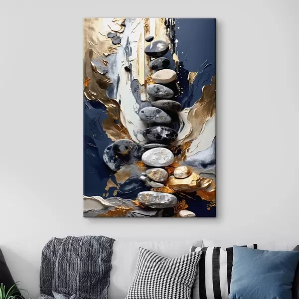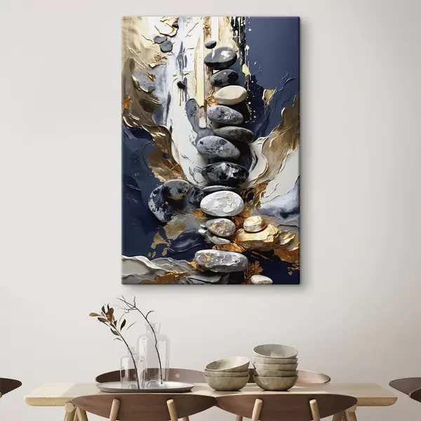 Vászonkép Absztrakt kompozíció kövekkel és texturált ecsetvonásokkal Nr s48362