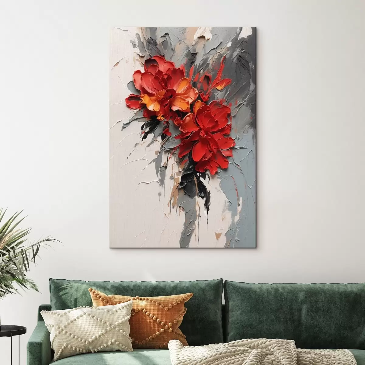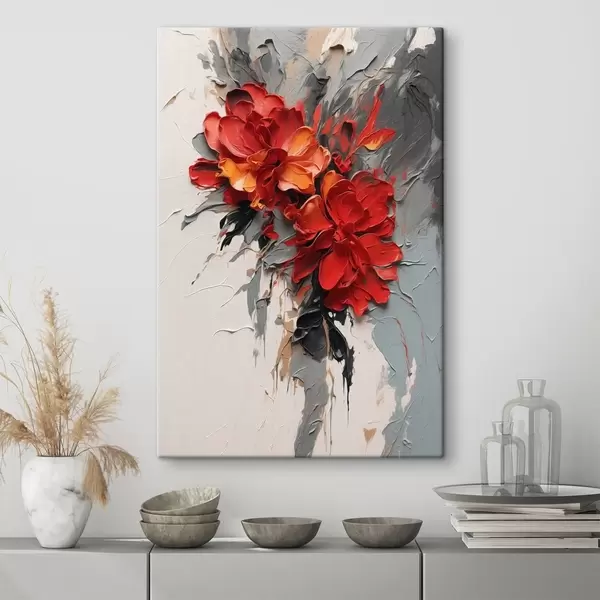 Vászonkép Vörös virágok texturált ecsetvonásokkal világos háttér előtt Nr s48365