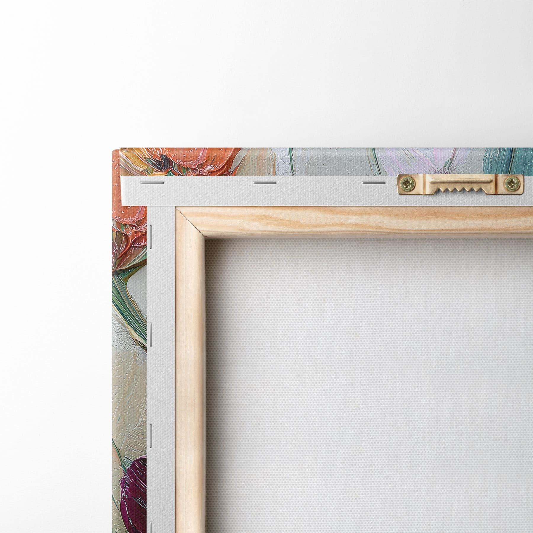 Ahhoz, hogy a vásznat a feszítőrúdra feszítsük anélkül, hogy a kép megsérülne, tükrözött képet használunk.