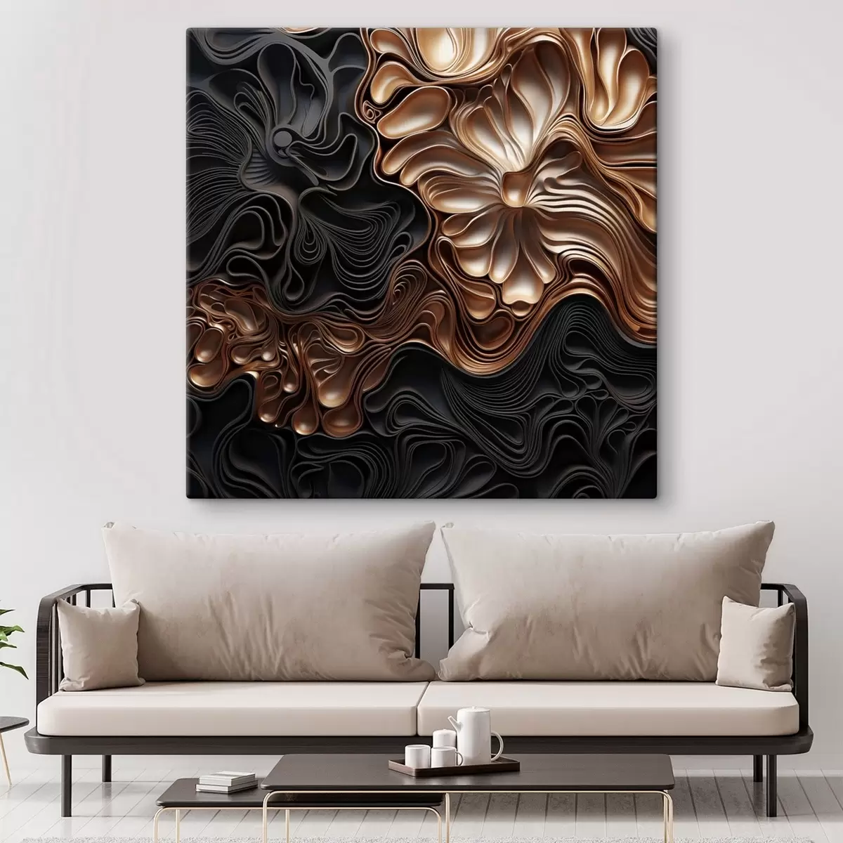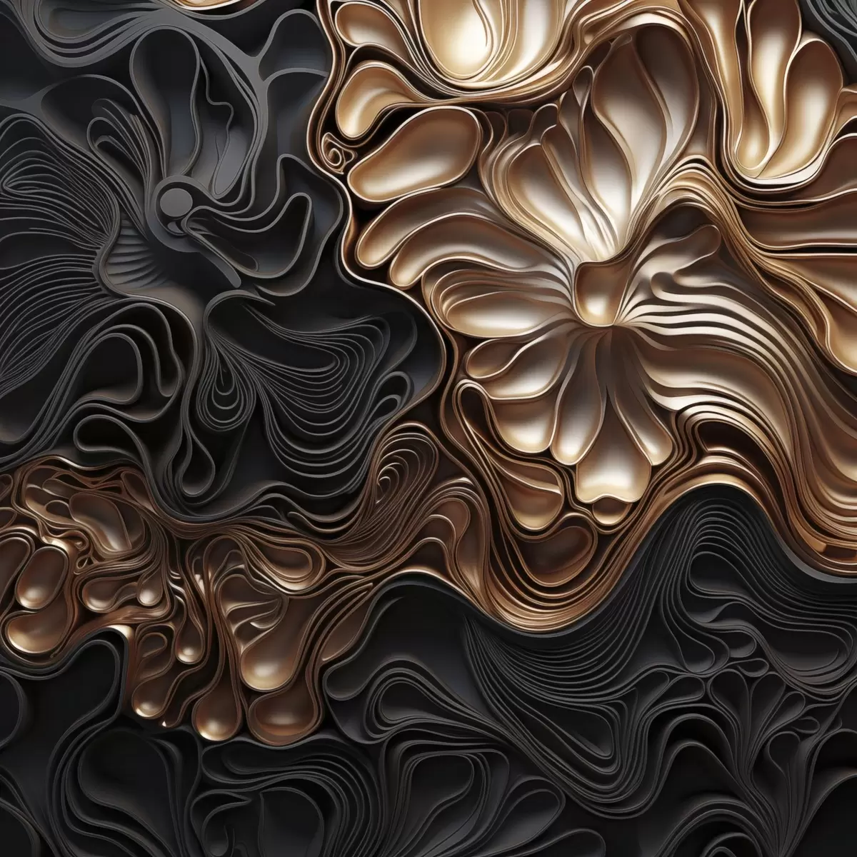 Vászonkép Absztrakt, áramló, organikus sötét formák, amelyek texturált modern művészetet teremtenek Nr s48383