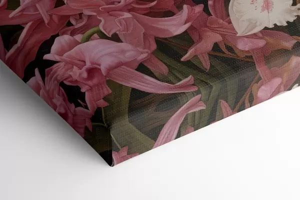 Vászonkép Trópusi virágcsokor, orchideák zöld lombozattal a háttérben Nr s48385