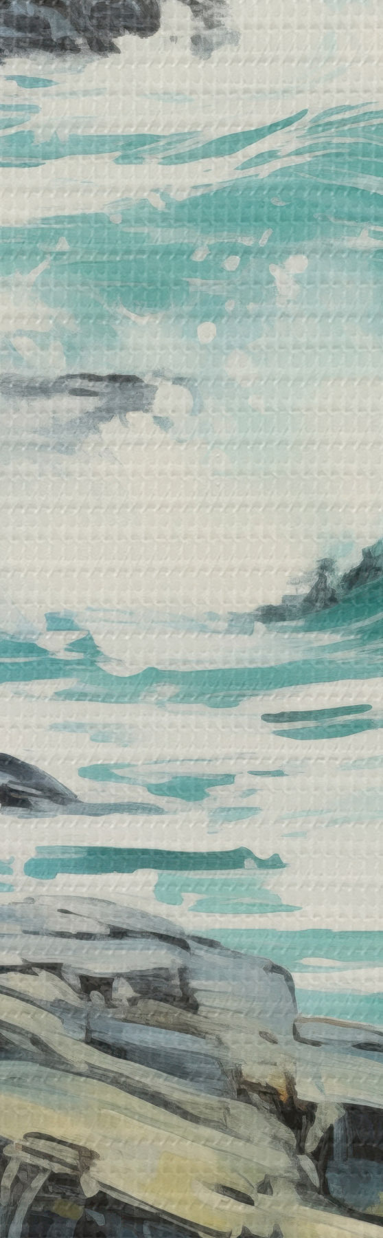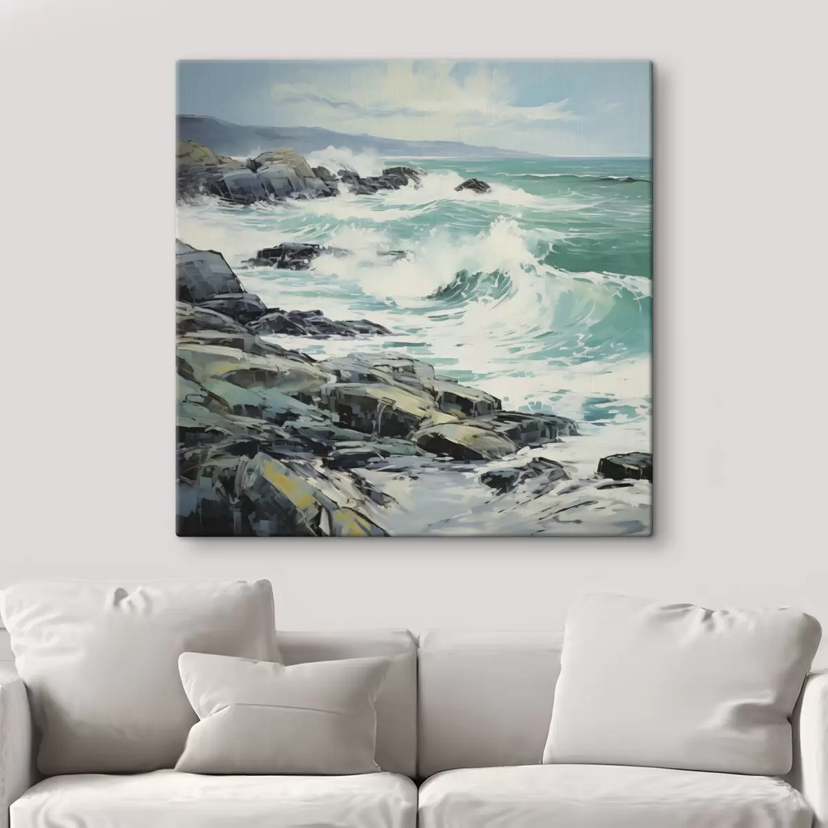 Vászonkép Sziklás tengerparti táj hullámokkal, felhős ég alatt, festői stílusban Nr s48388