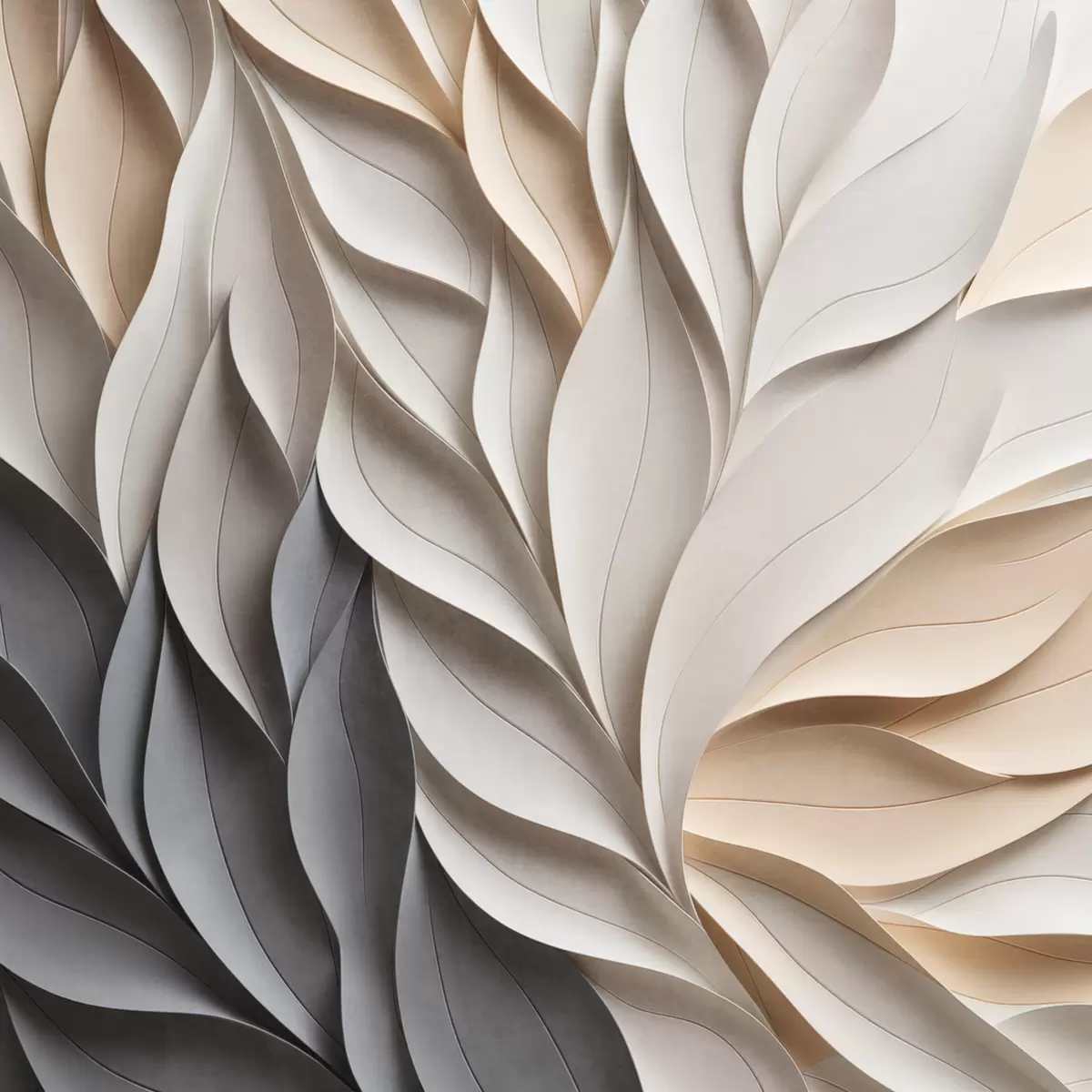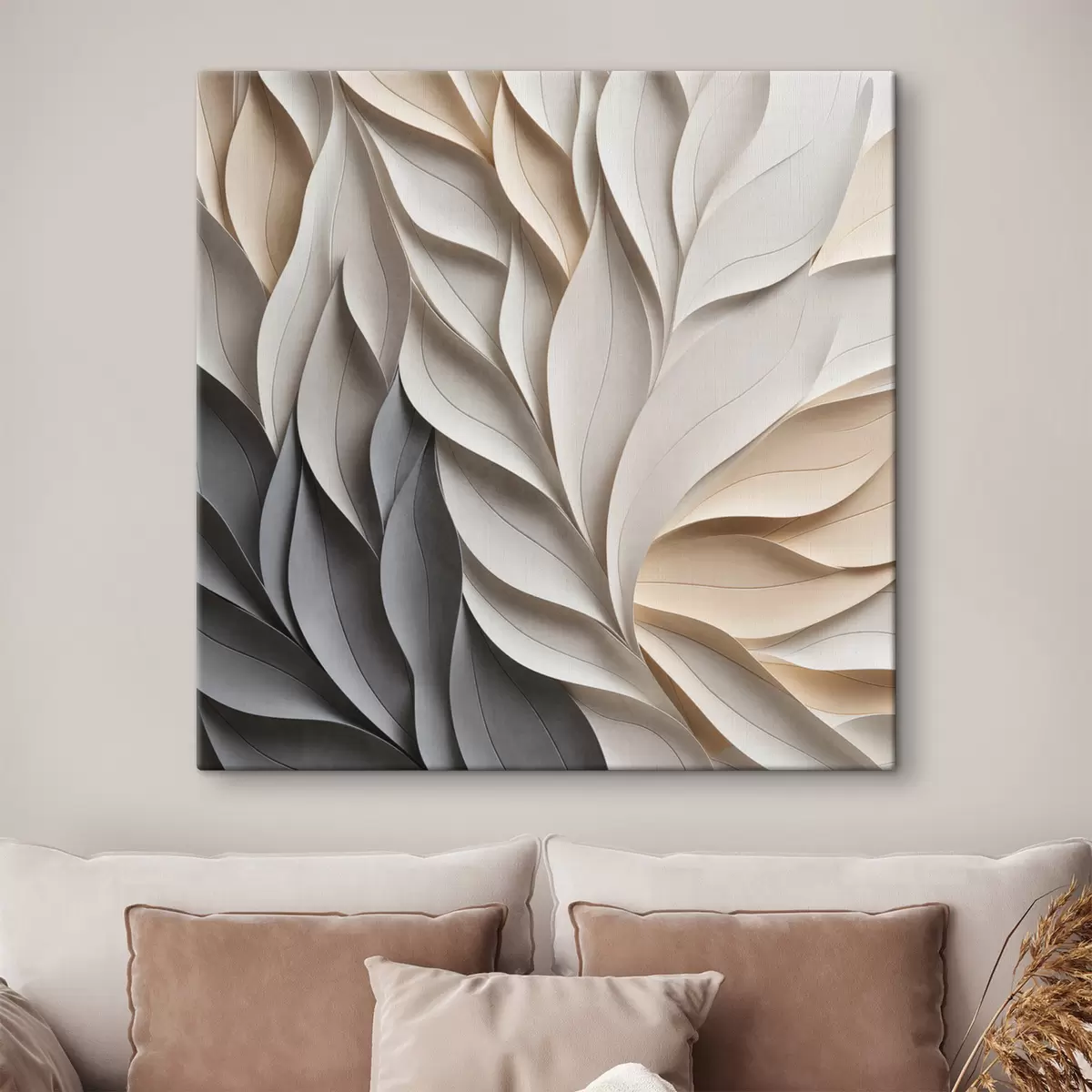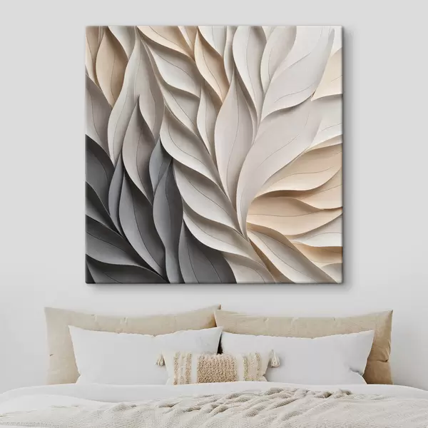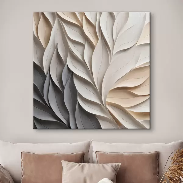 Vászonkép Texturált, egymást átfedő absztrakt levélformák semleges bézs, krém és szürke árnyalatokban Nr s48407