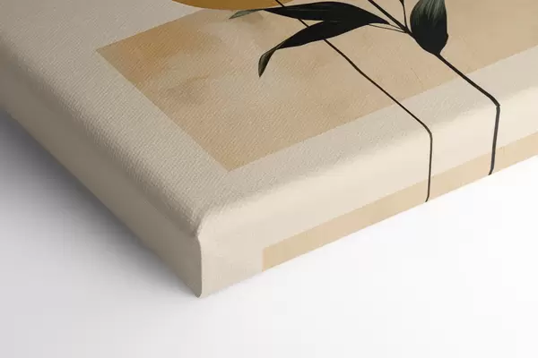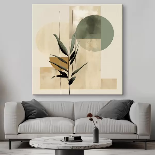 Vászonkép Sötétzöld növény, absztrakt geometriai formákkal és bézs és zöld színű akvarellszerű textúrákkal Nr s48409