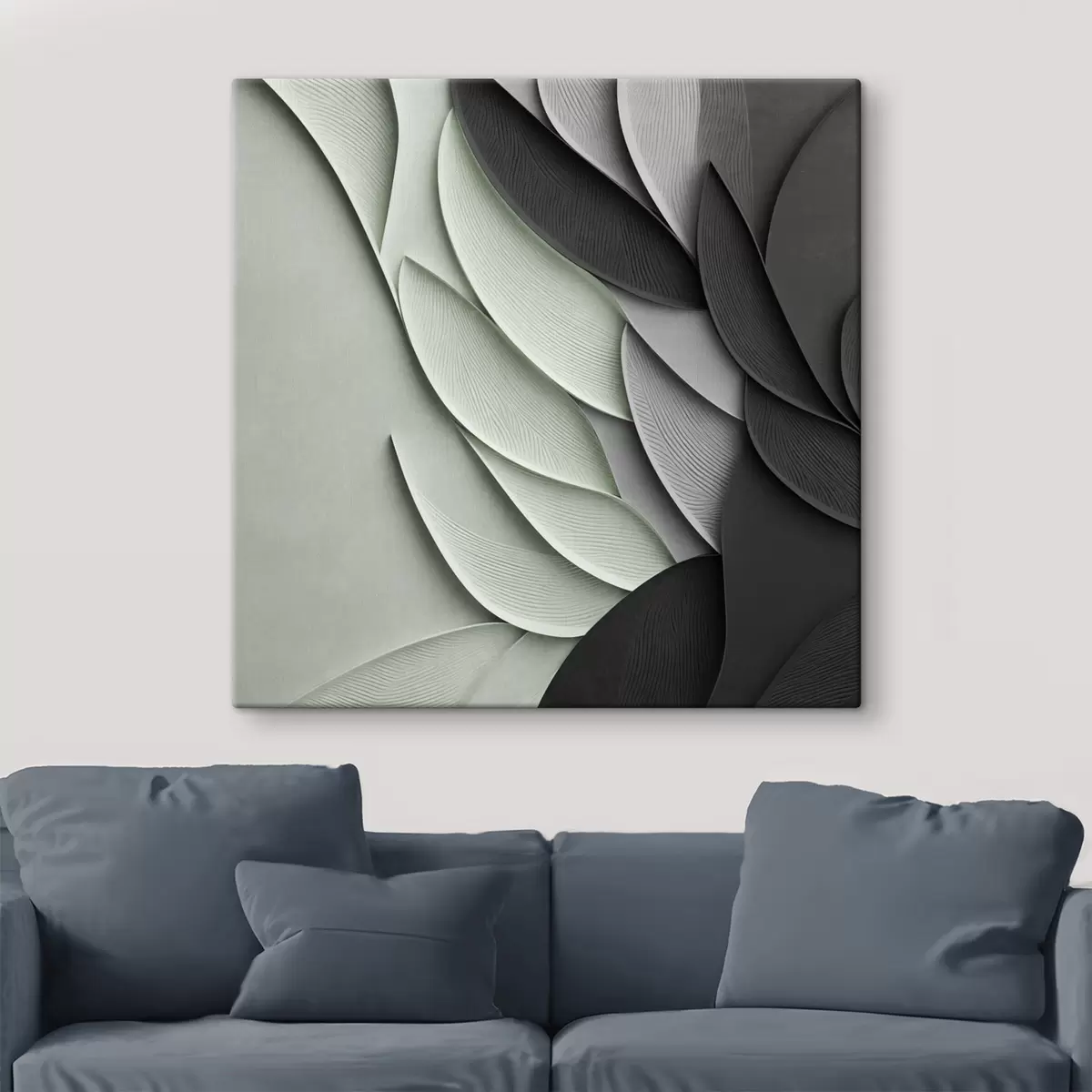 Vászonkép Absztrakt, stilizált levelek szürke, fehér és halványzöld árnyalatokban Nr s48412