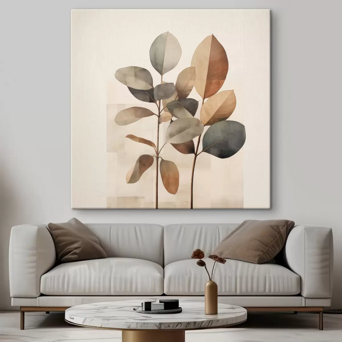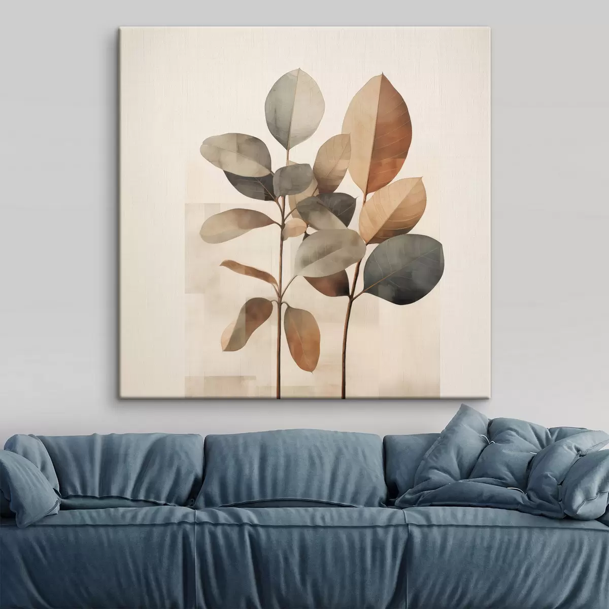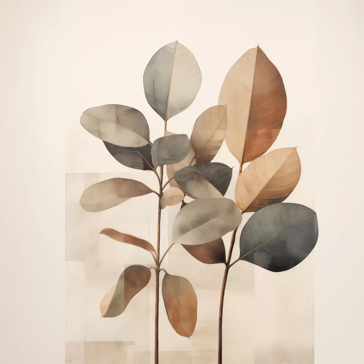 Vászonkép Magas növények ovális levelekkel, tompított színekben és absztrakt téglalap alakú mintákkal Nr s48413