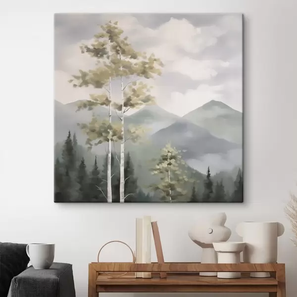 Vászonkép Fák hegyek előtt, festményhatású Nr s48421