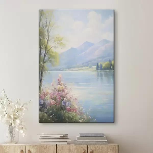 Vászonkép Festményen ábrázolt tóparti táj Nr s48423
