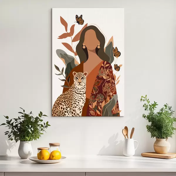 Vászonkép Mintás ruhát viselő nő Nr s48434