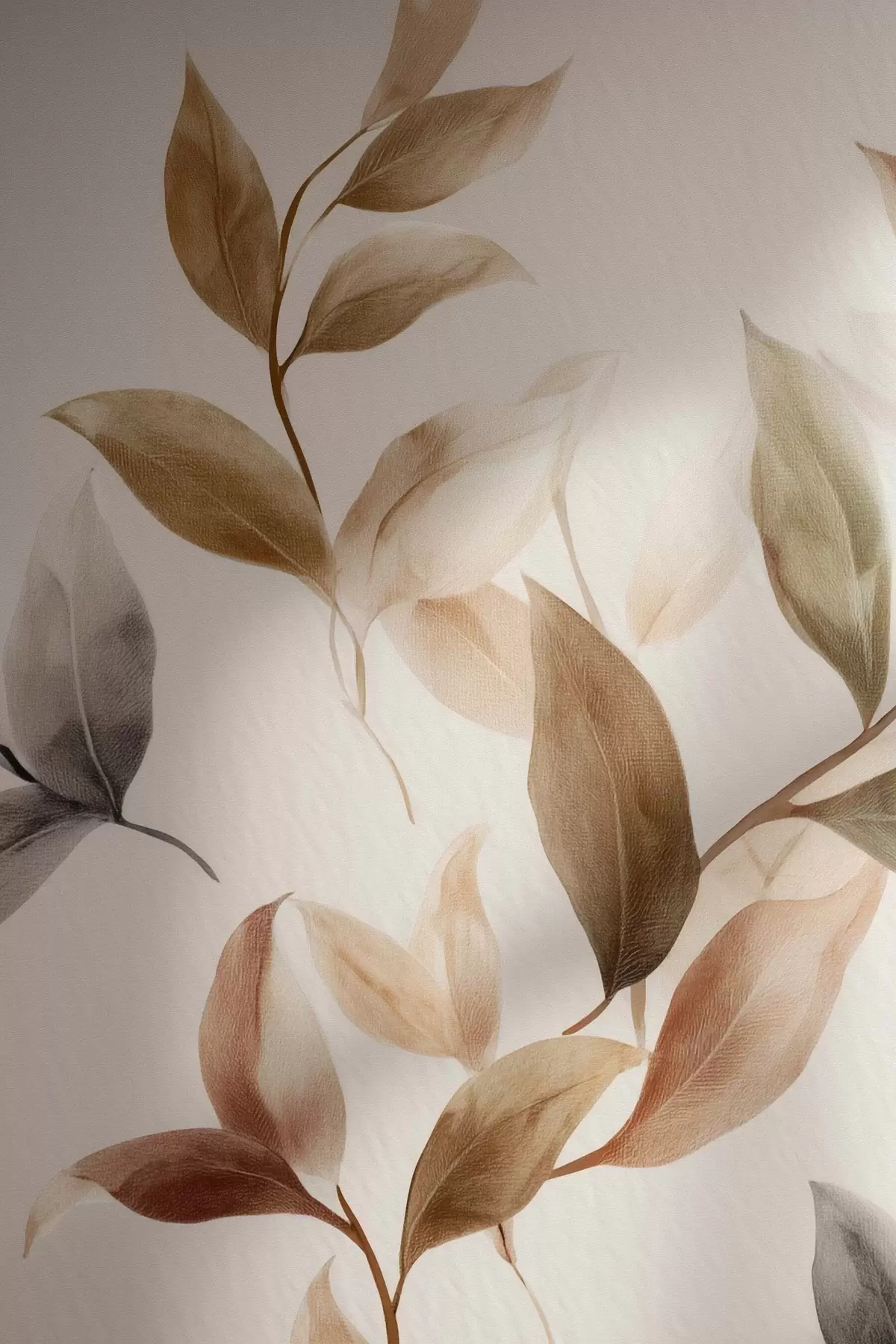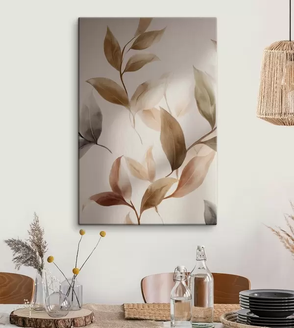 Vászonkép Festés levelekkel, bézs színű ágak, minimalizmus, skandináv stílus Nr s48479