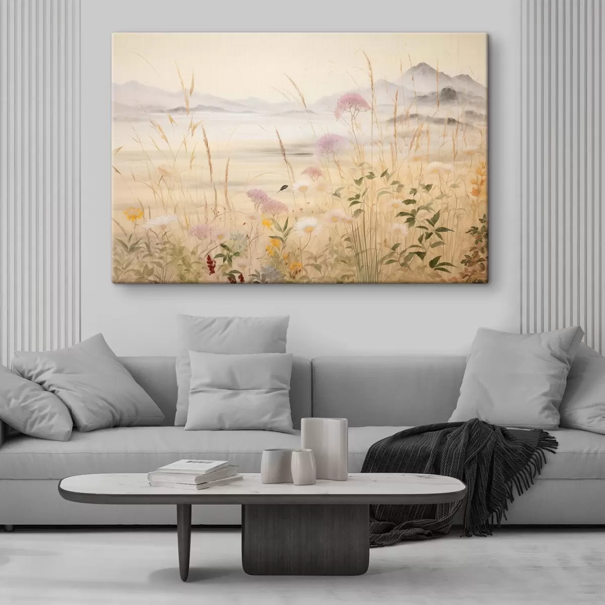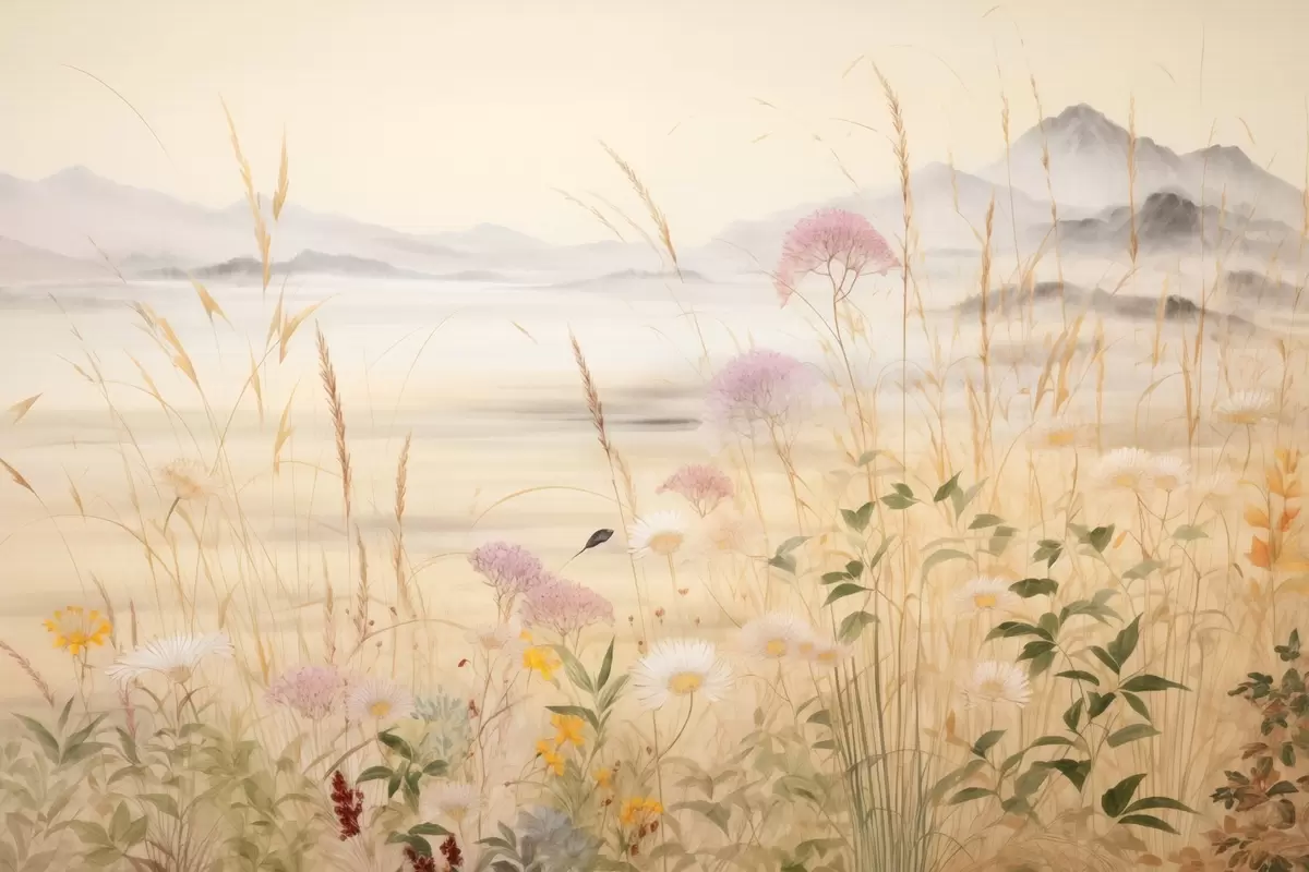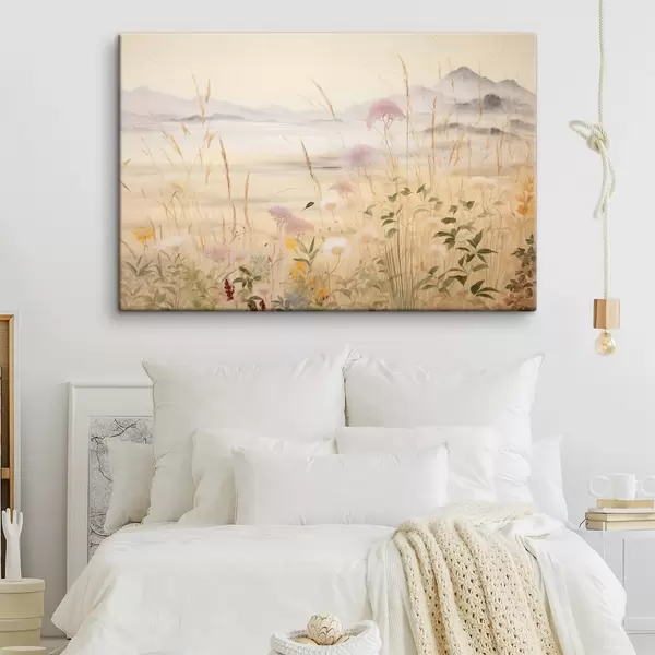 Vászonkép Bézs színű virágmező, réti fűfélék, finom táj Nr s48480