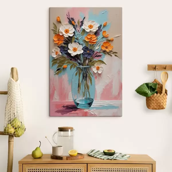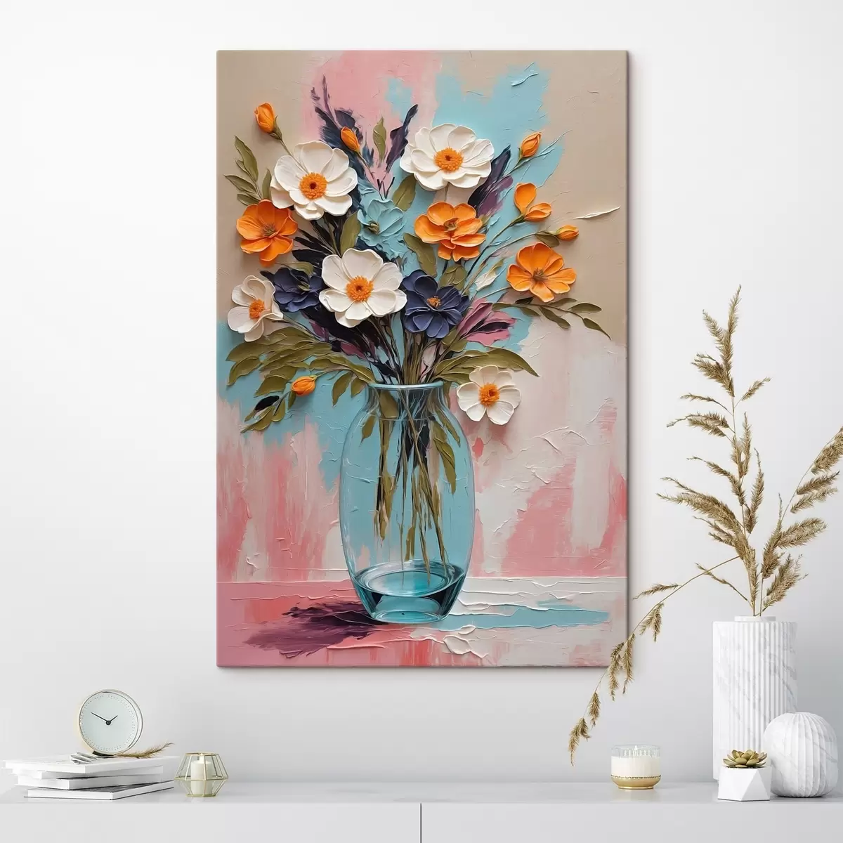 Vászonkép Virágcsokor üvegvázában színes háttér előtt Nr s48488