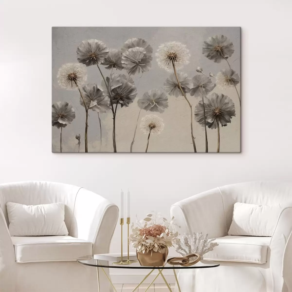 Vászonkép Dekoratív pitypangok semleges színekben Nr s48492