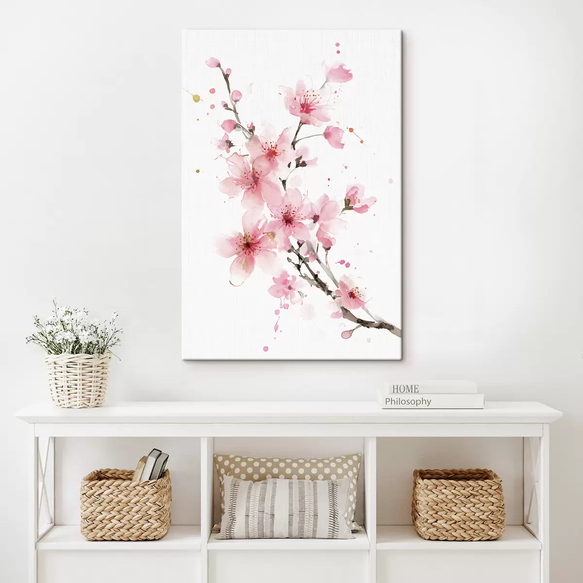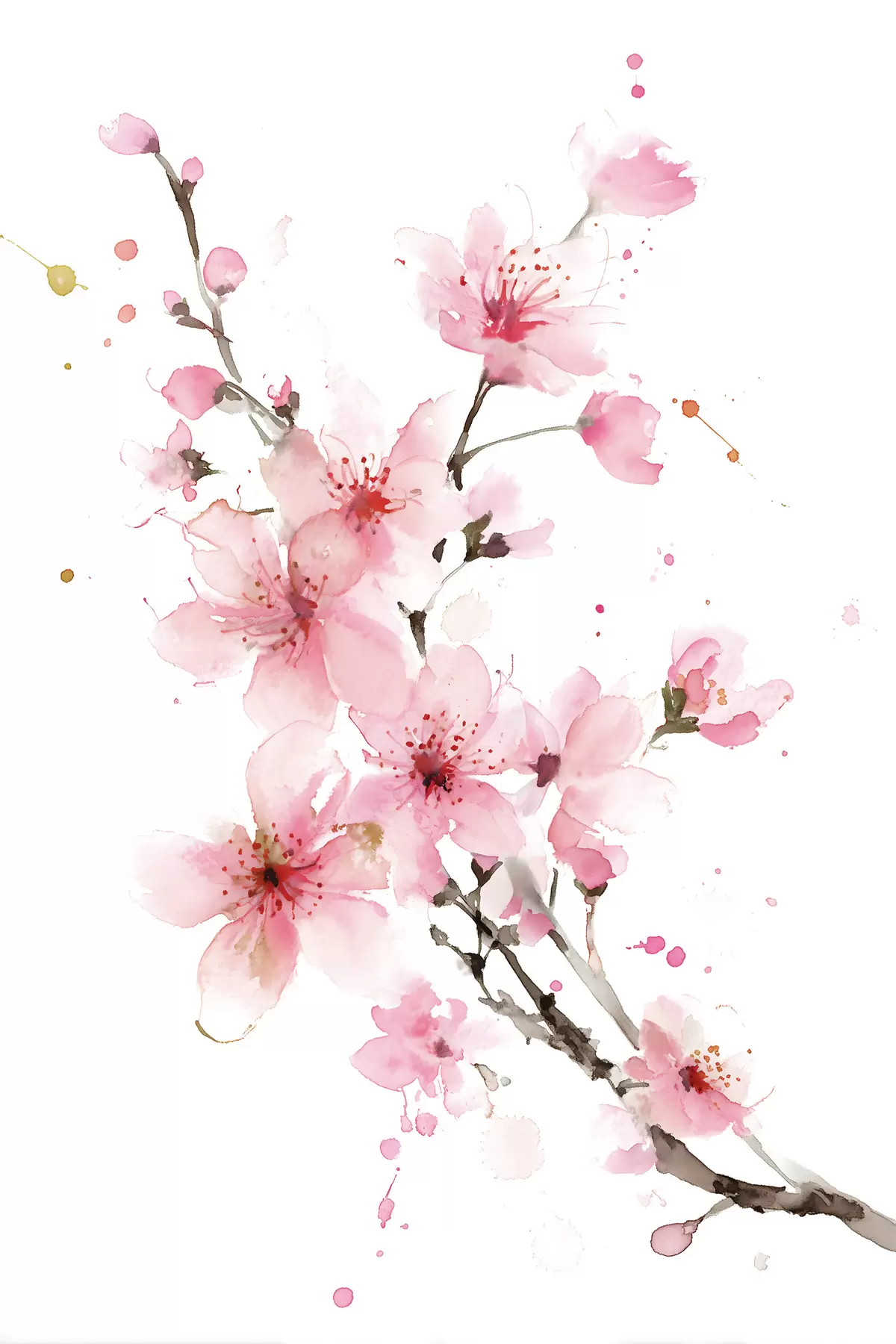 Vászonkép virágzó kajszibarackág akvarell stílusban Nr s48521