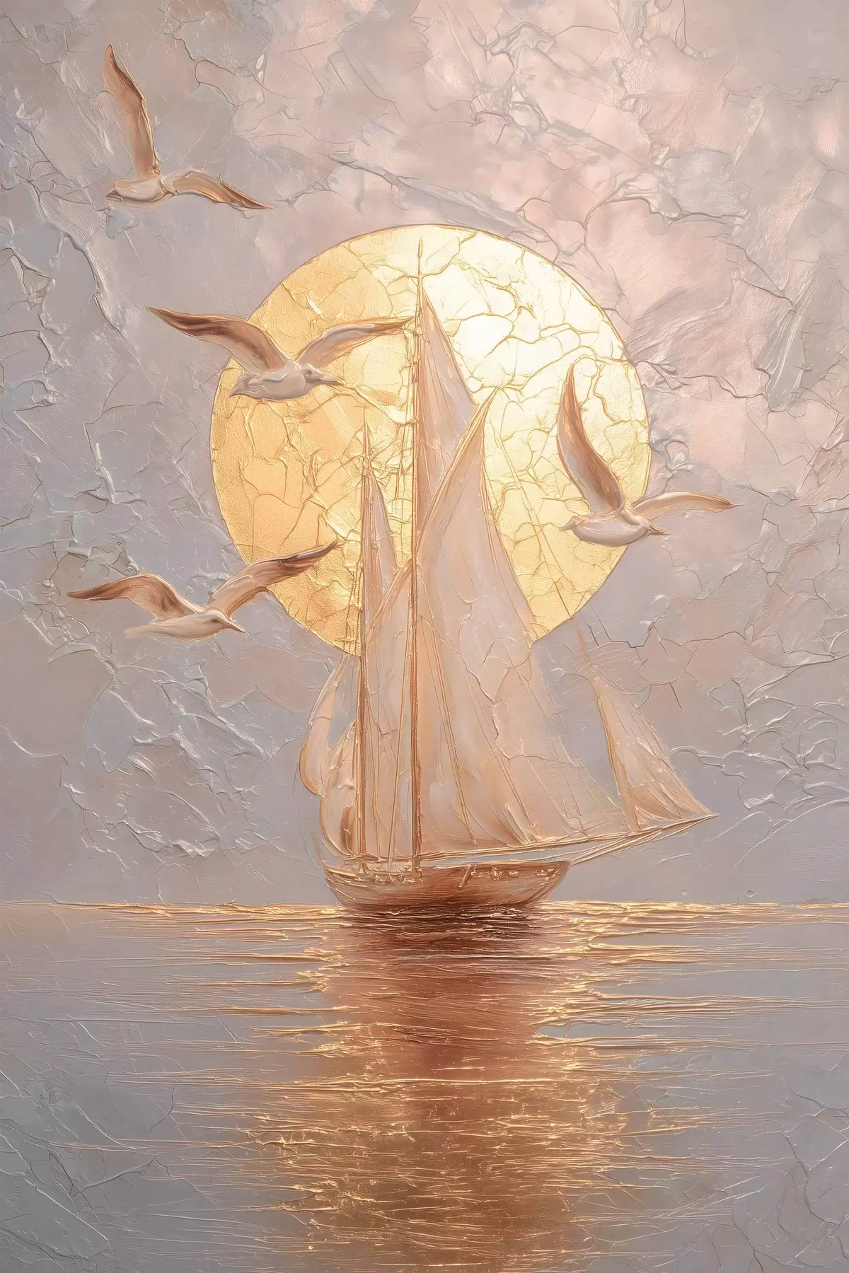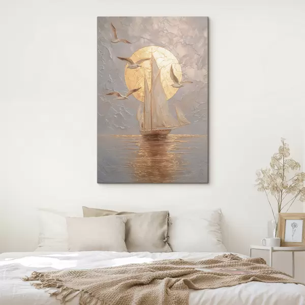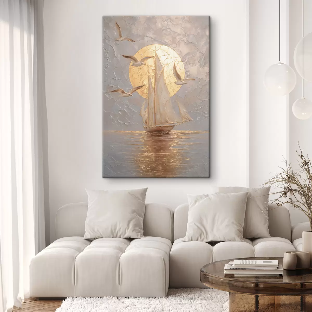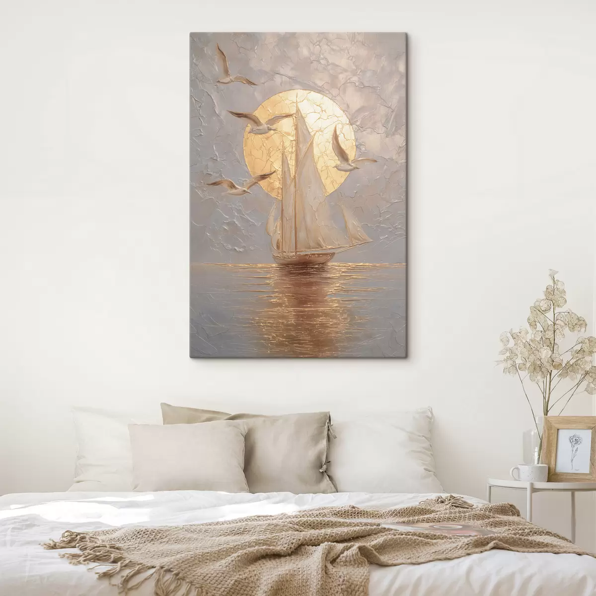 Vászonkép egy hajó naplementekor impasto stílusban Nr s48556