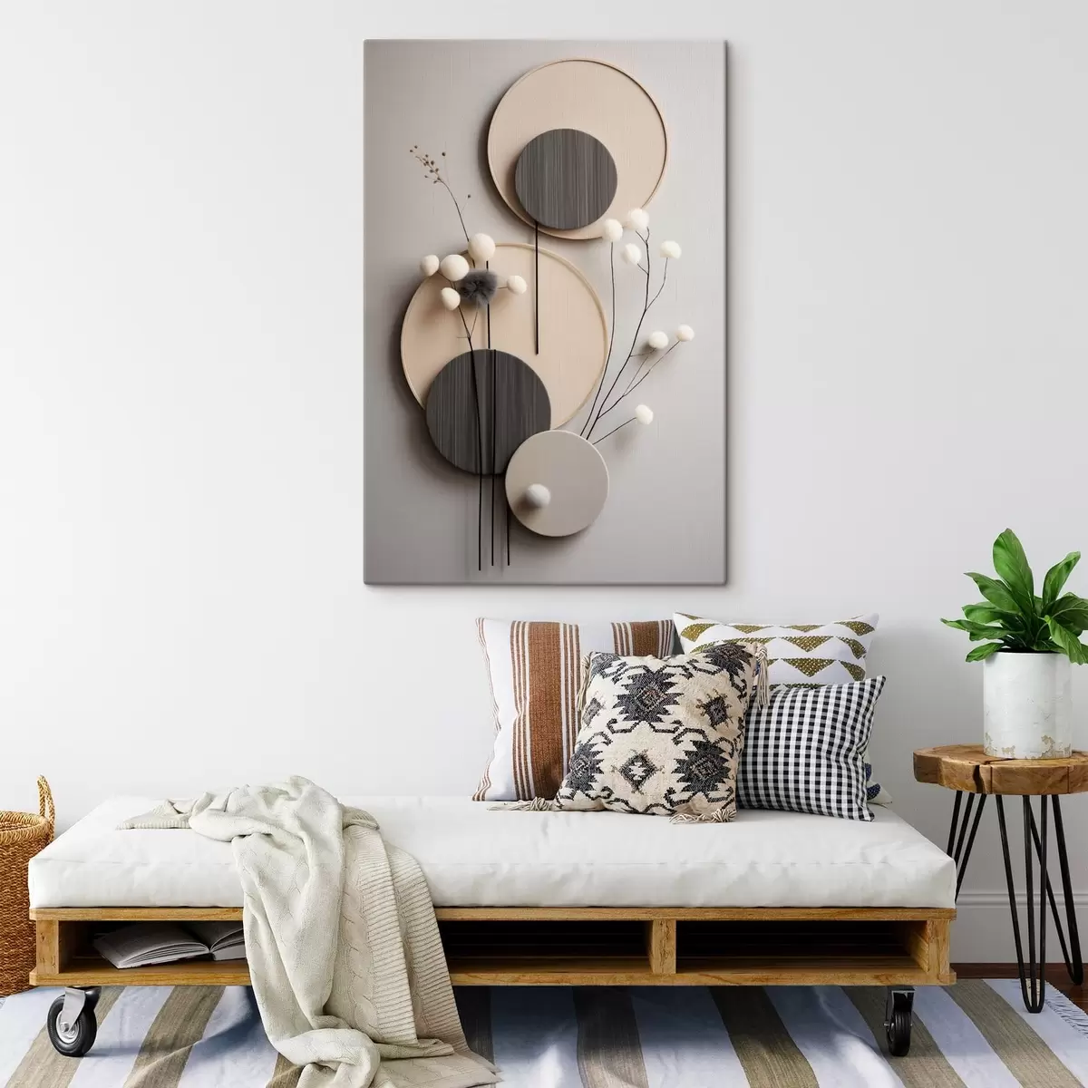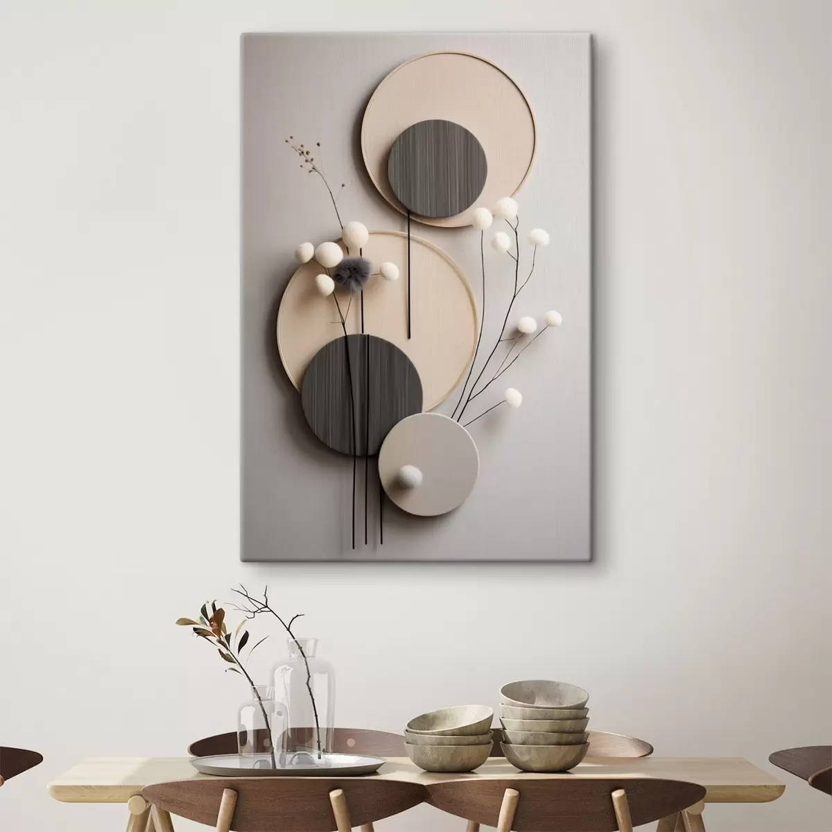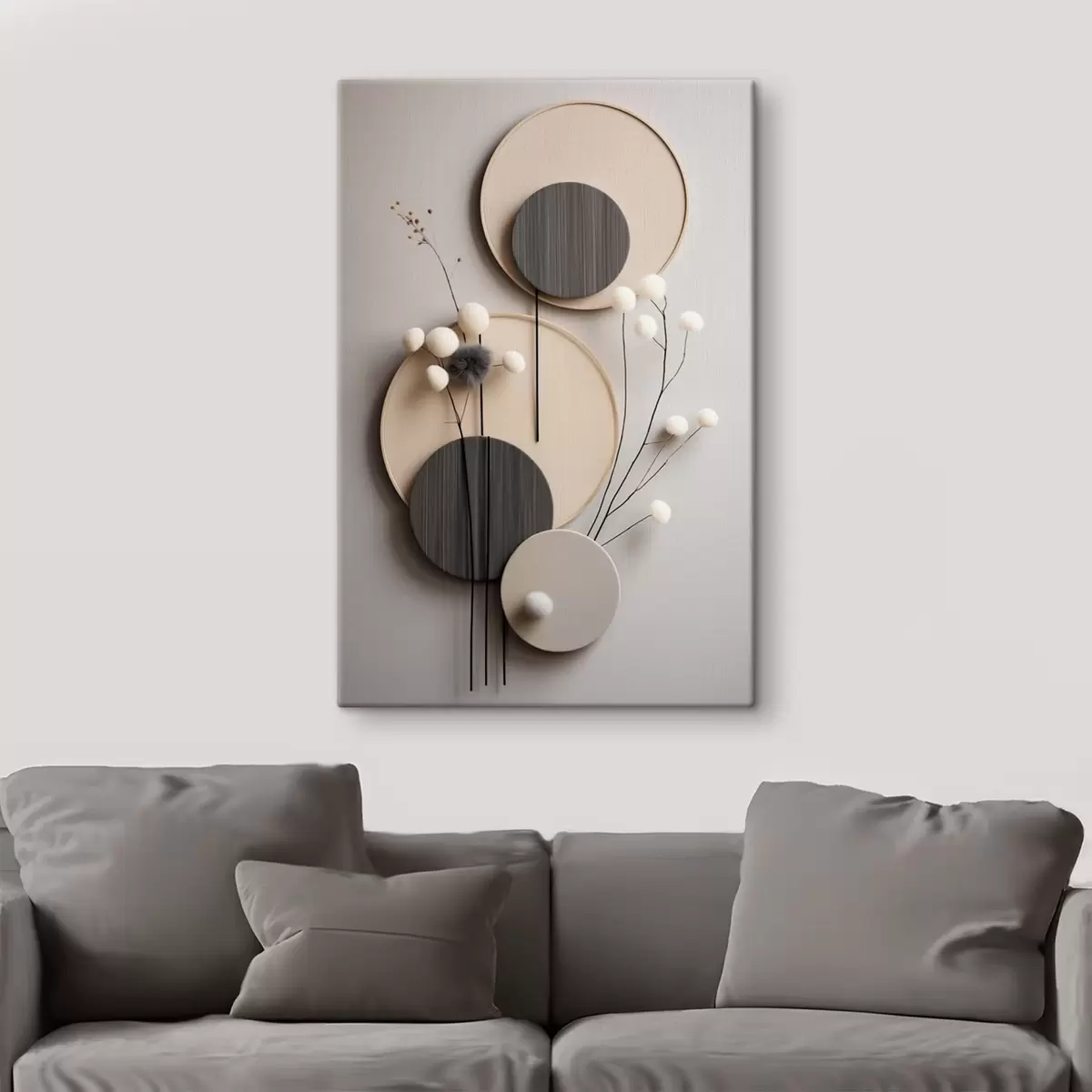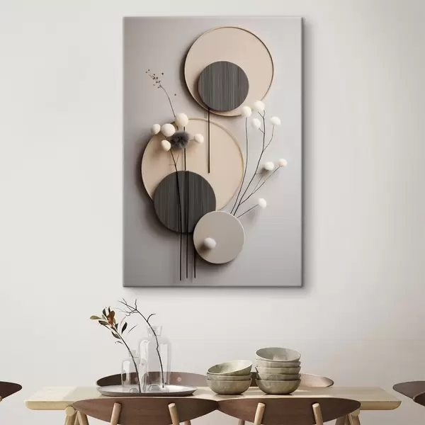 Vászonkép Kerek panelek száraz gallyakkal és puha labdákkal Nr s48601