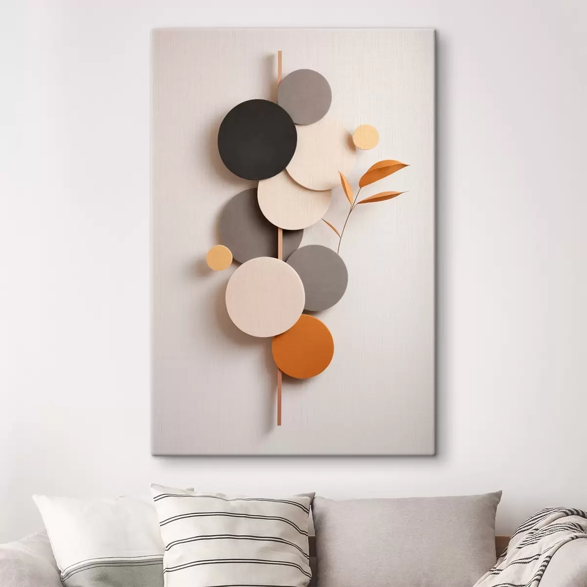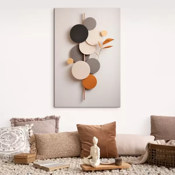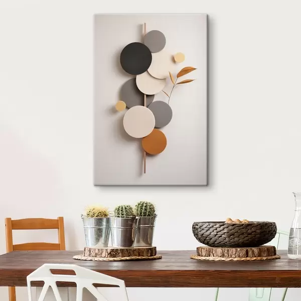 Vászonkép Absztrakt körök levelekkel, semleges színekben Nr s48602