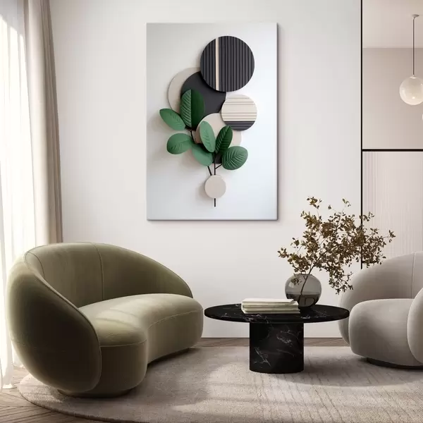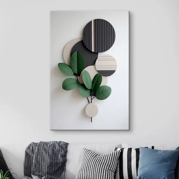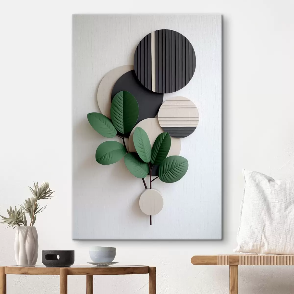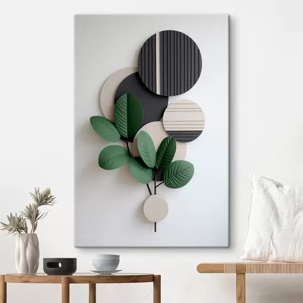 Vászonkép Zöld levelek kerek, dombornyomott elemekkel Nr s48603