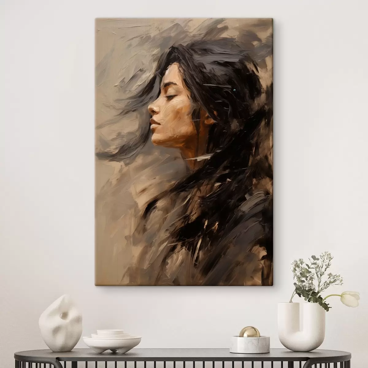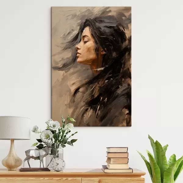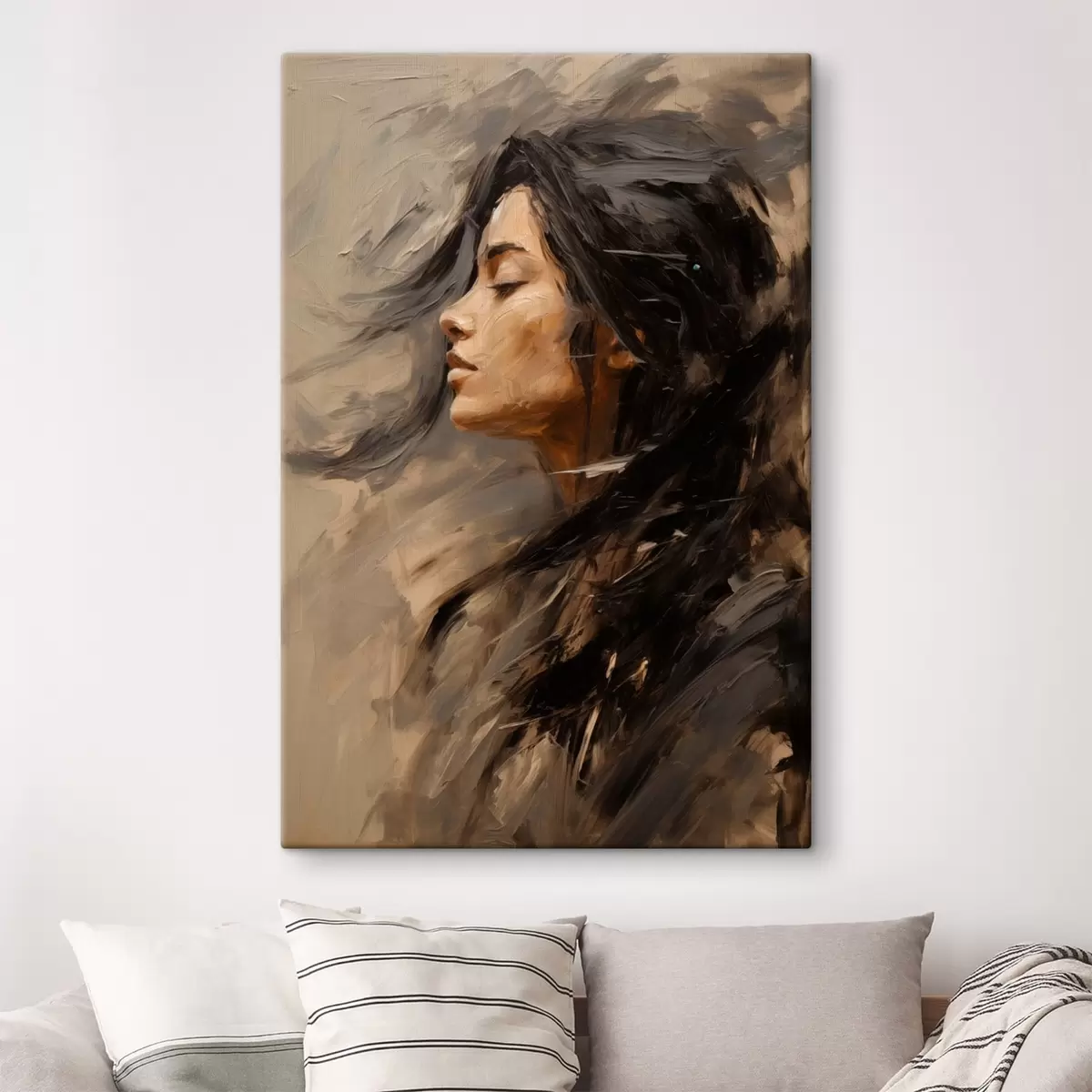 Vászonkép Női profil festői ecsetvonásokkal, meleg színekkel Nr s48621