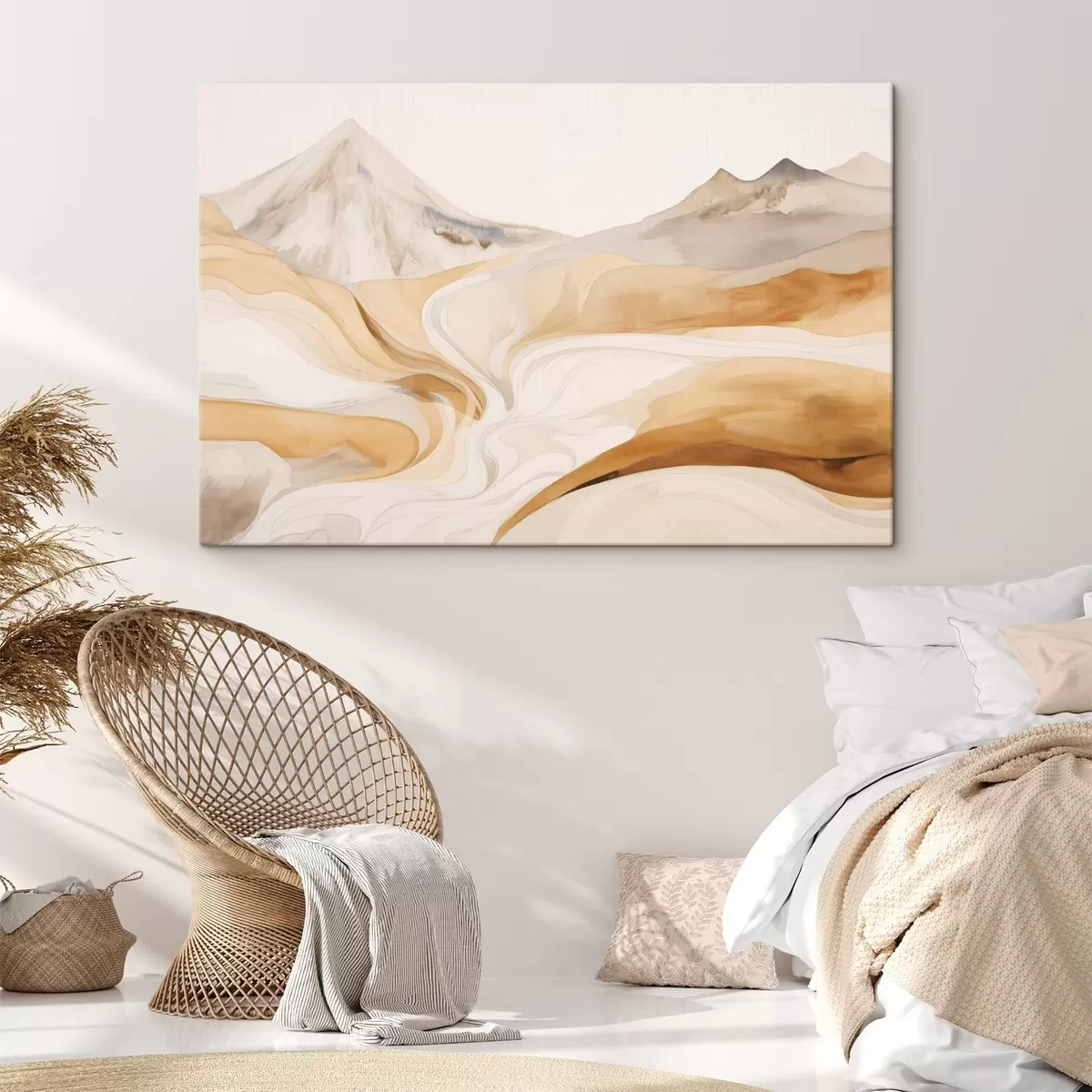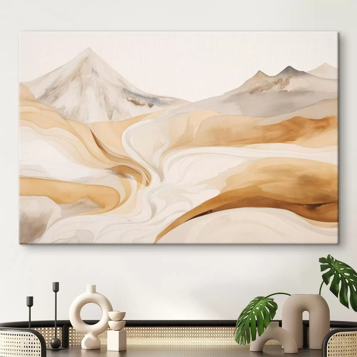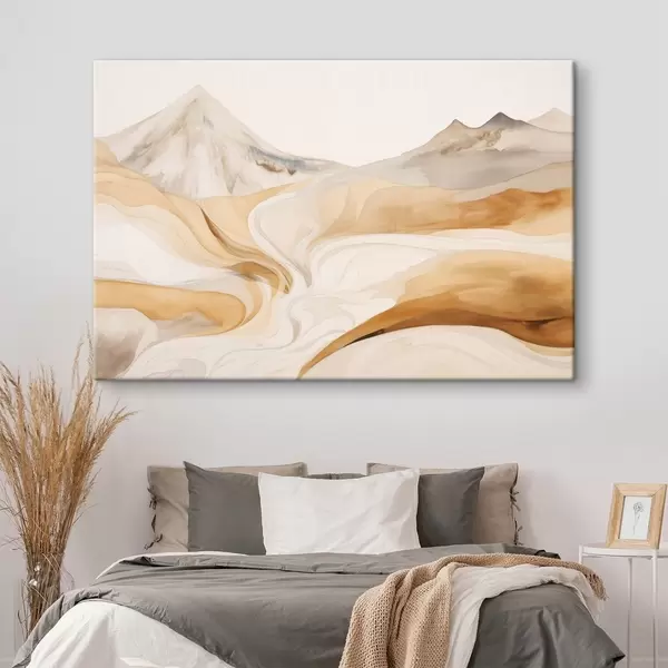 Vászonkép Stilizált tájkép hegyekkel és áramló vonalakkal Nr s48626