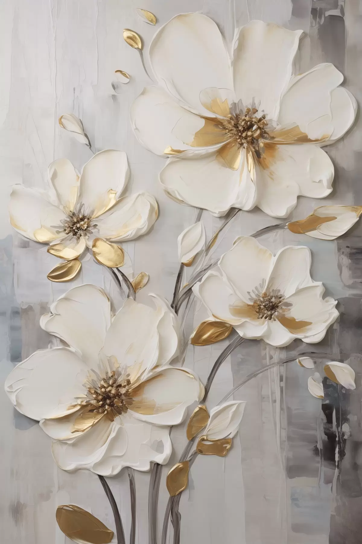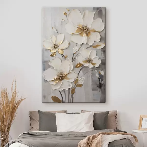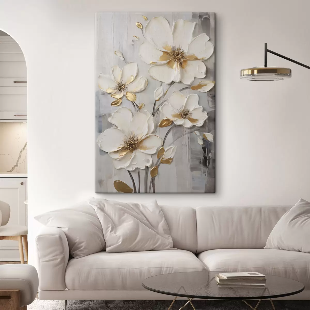 Vászonkép Fehér virágok sárga díszítéssel texturált háttér előtt Nr s48721