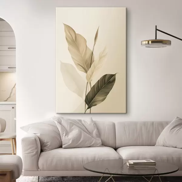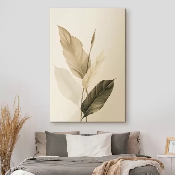 Vászonkép Nagy trópusi levelek bézs és barna árnyalatokban, világos háttérrel Nr s48725