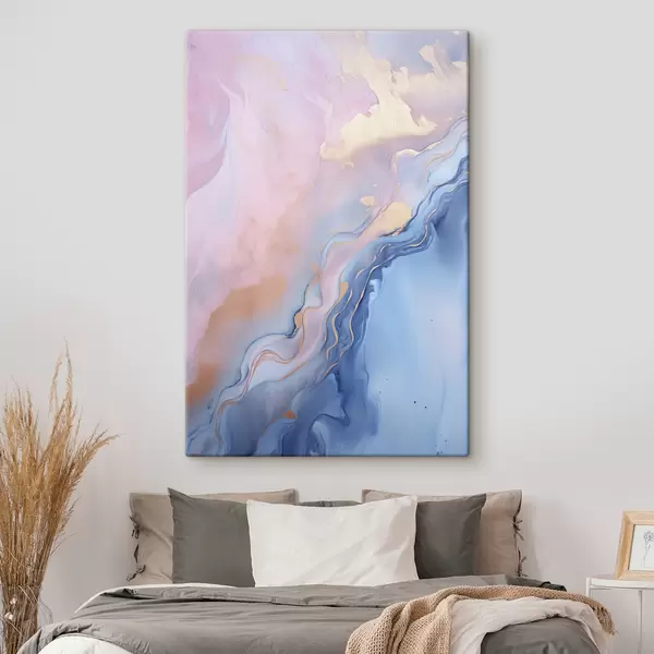 Vászonkép Absztrakt, texturált folyadékművészet, rózsaszín és kék színű, kavargó mintákkal Nr s48729