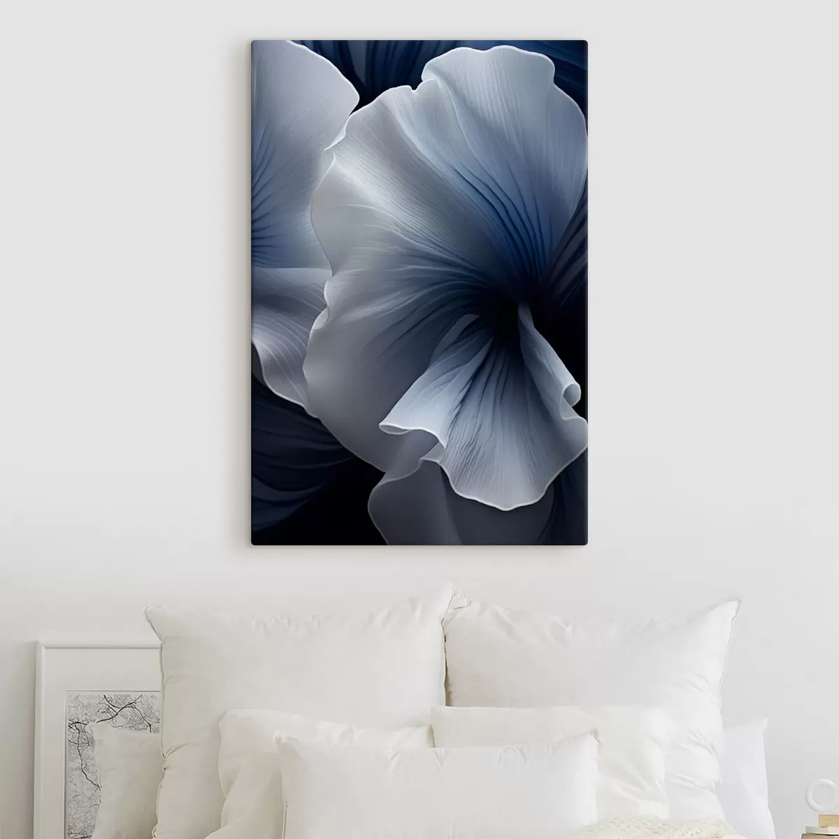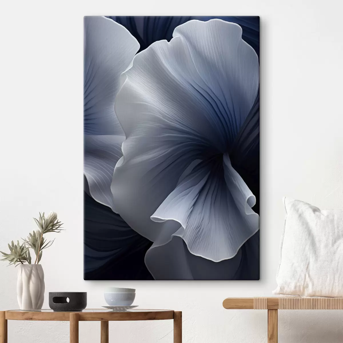 Vászonkép Absztrakt kék-fehér virágszirmok sötét háttér előtt Nr s48731