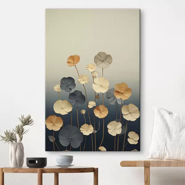Vászonkép Vízililiomlevelek bézs és sötétkék tompa háttér előtt Nr s48733