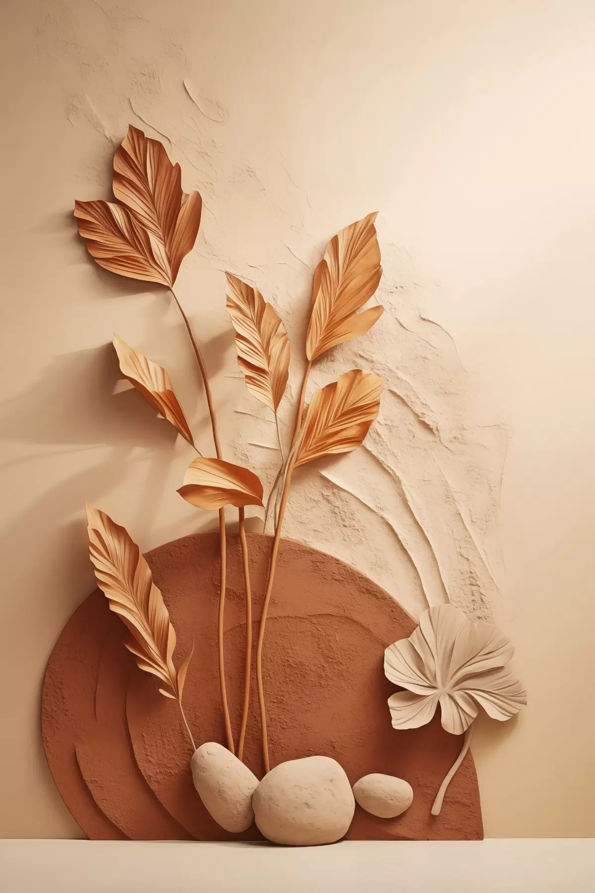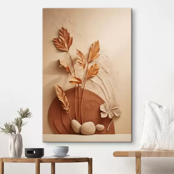 Vászonkép Minimalista műalkotás szárított virágokkal és pampasfüvel, texturált háttérrel Nr s48740