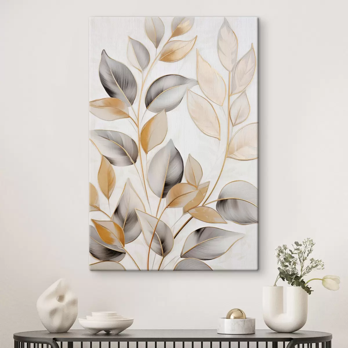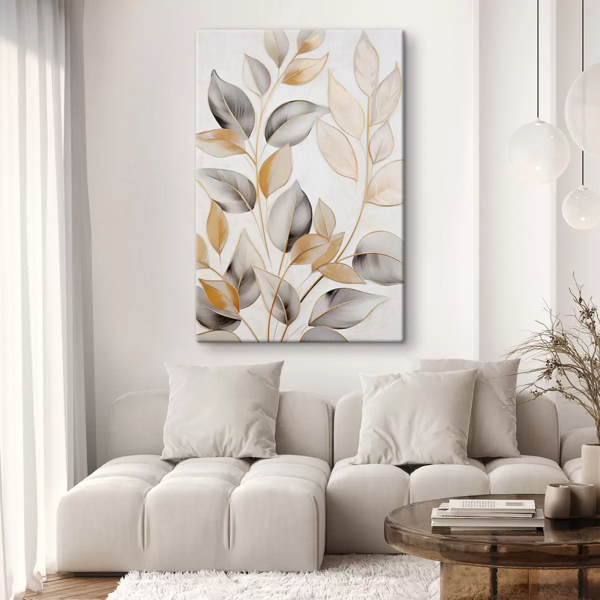 Vászonkép Nagy, áttetsző levelek szürke és sárga árnyalatokban Nr s48746