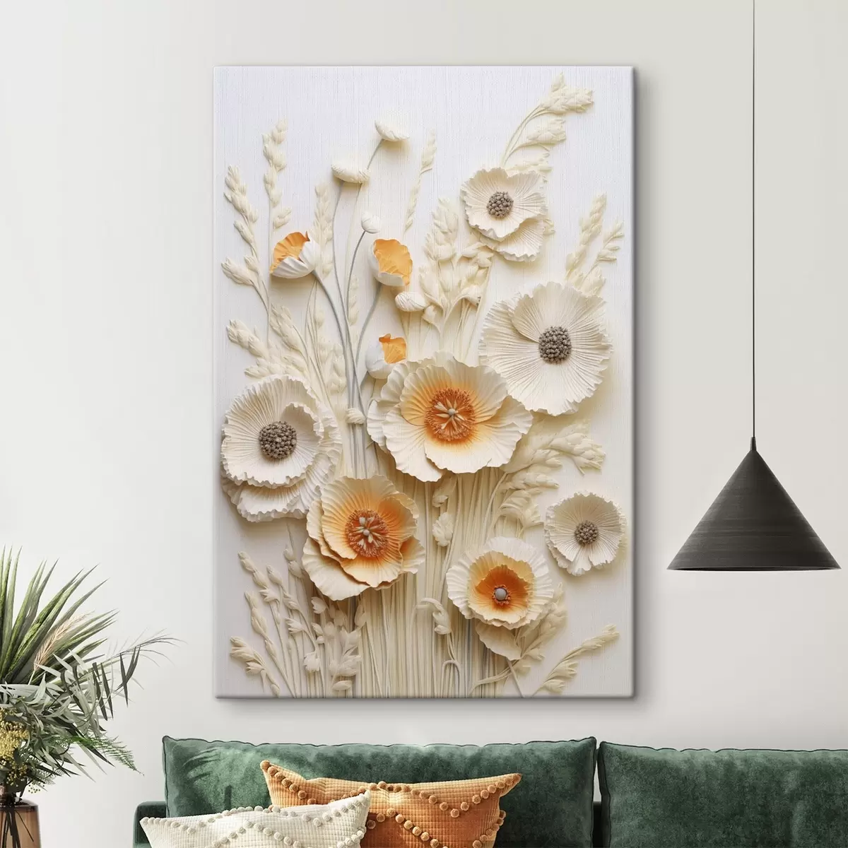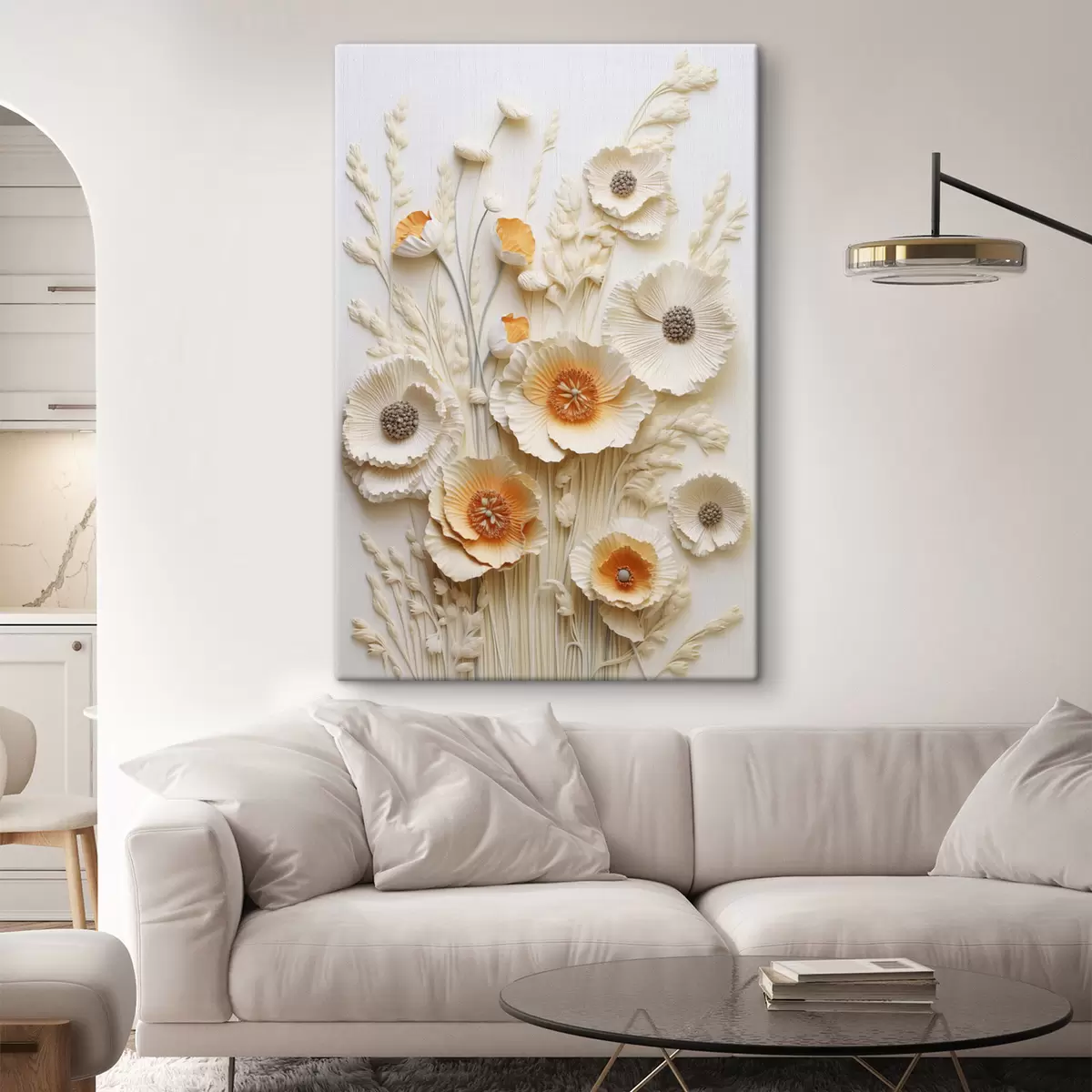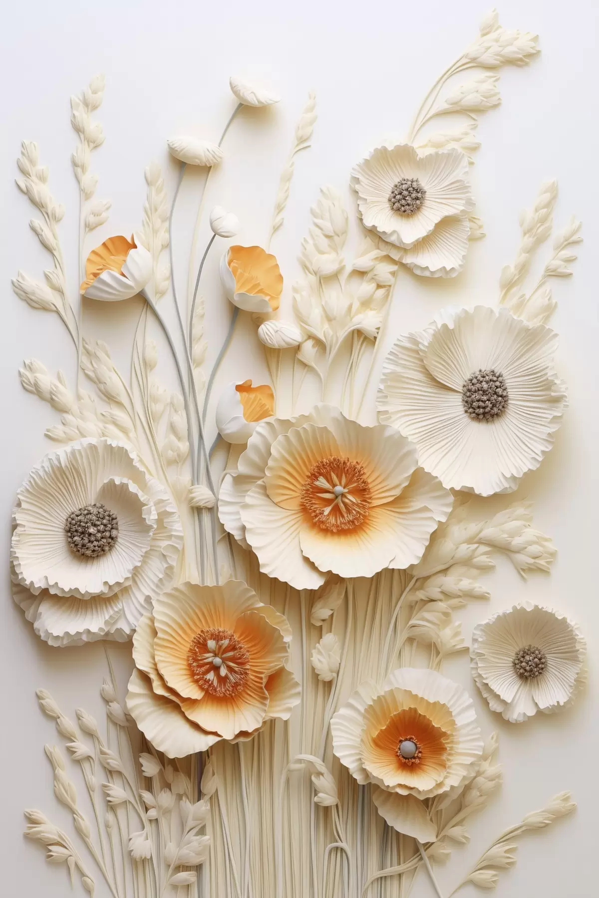 Vászonkép Krém és narancssárga pipacsokból álló csokor, szárított búzaszárral Nr s48747